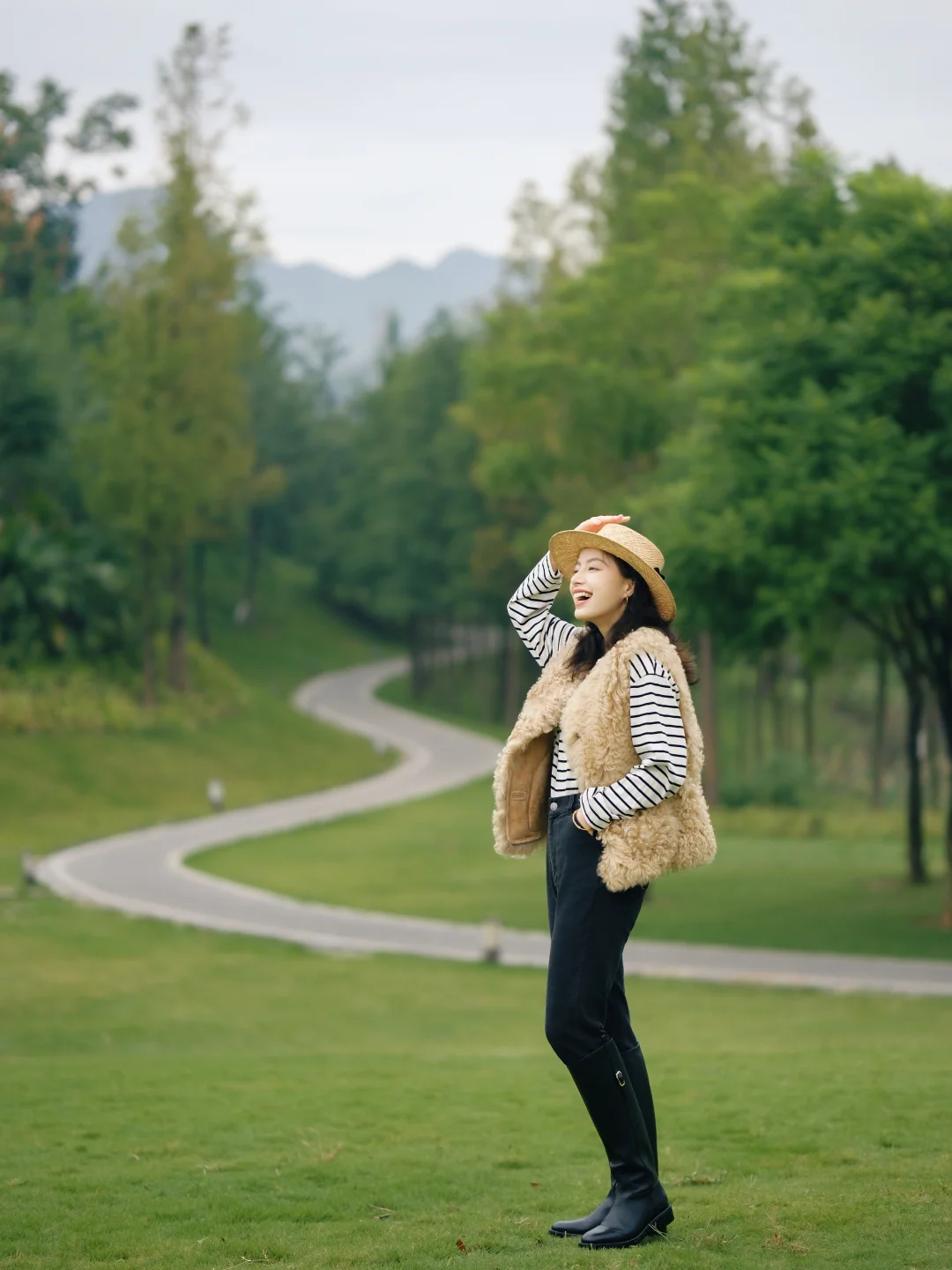 2️⃣草坪之间的弯曲小路、石板路,都很适合作为画面里的线条,让画面更丰富
