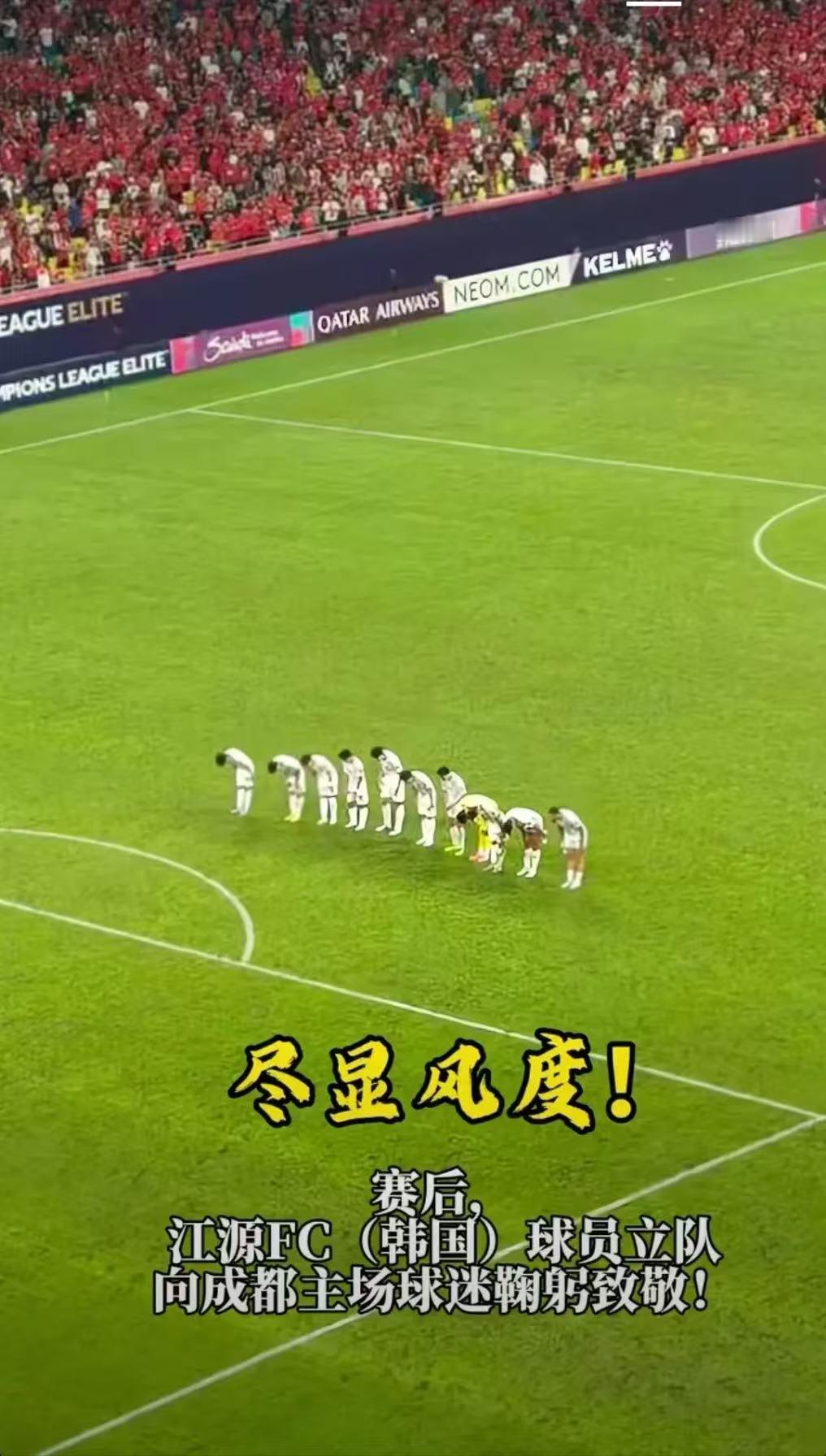 比赛结束,韩国队员排成一排给蓉城主场球迷鞠躬时,原本恨着日韩的心,突然间感慨良多