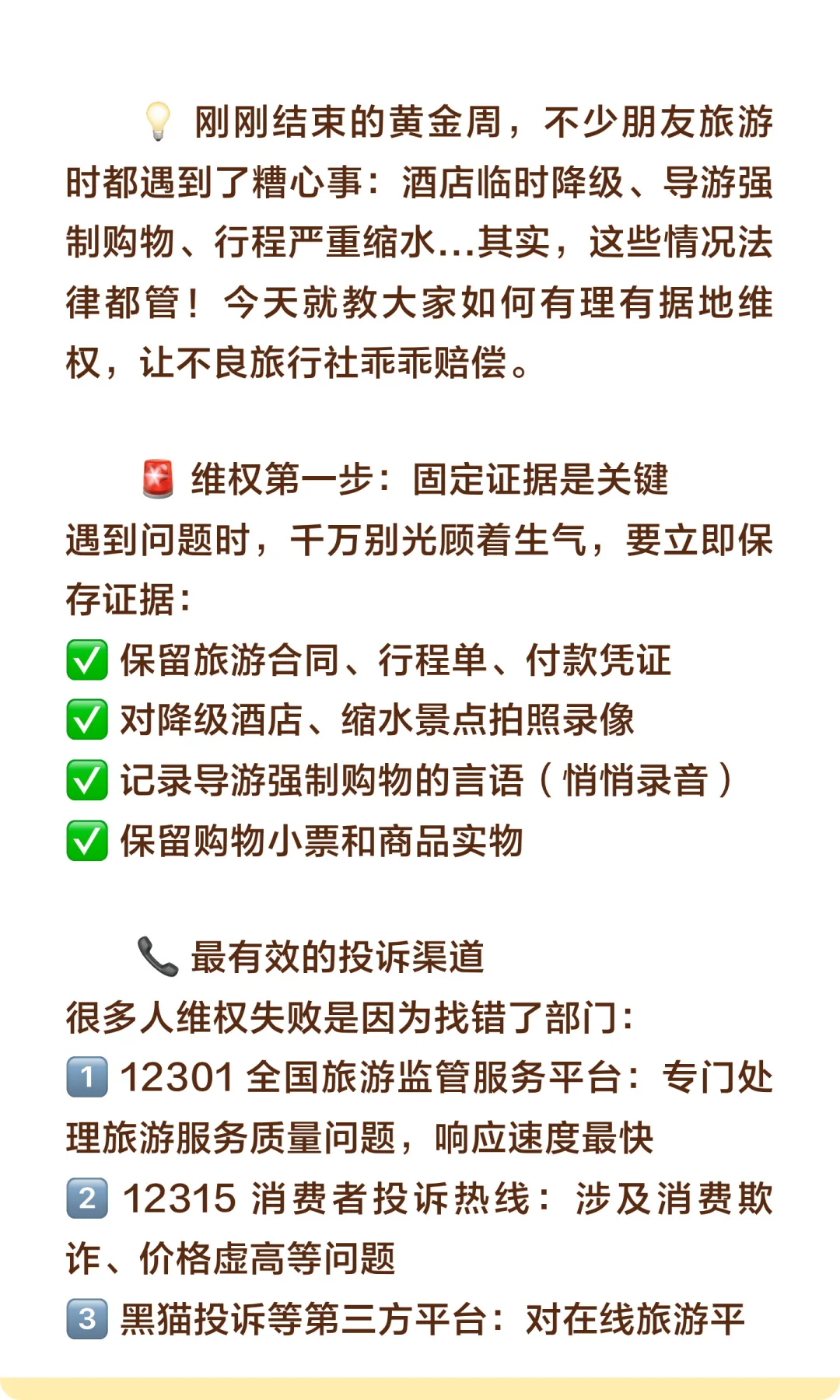 别怕!现在旅游维权已经很成熟了,若您遇到十分恶劣的情况,自己处理不了。流下(地区+诉求) 立即为您连系当地靠谱律师帮您👨⚖️