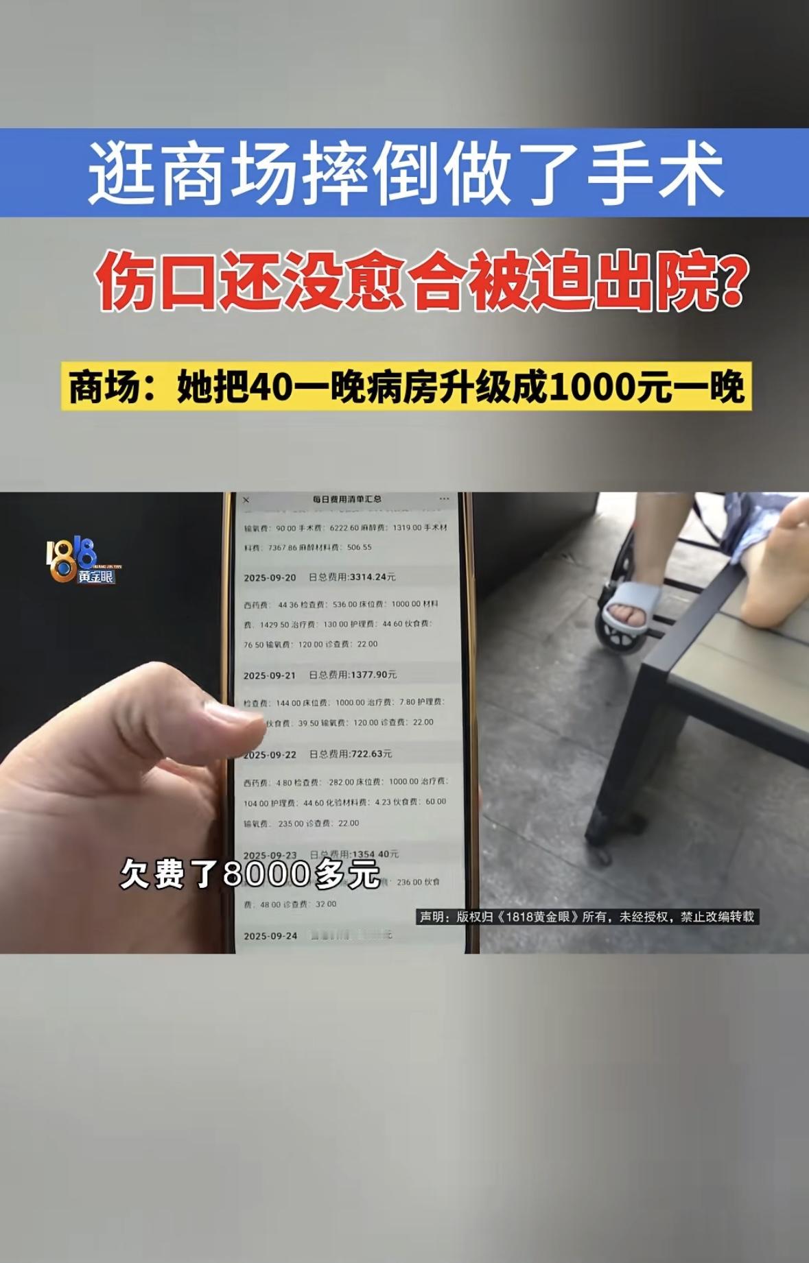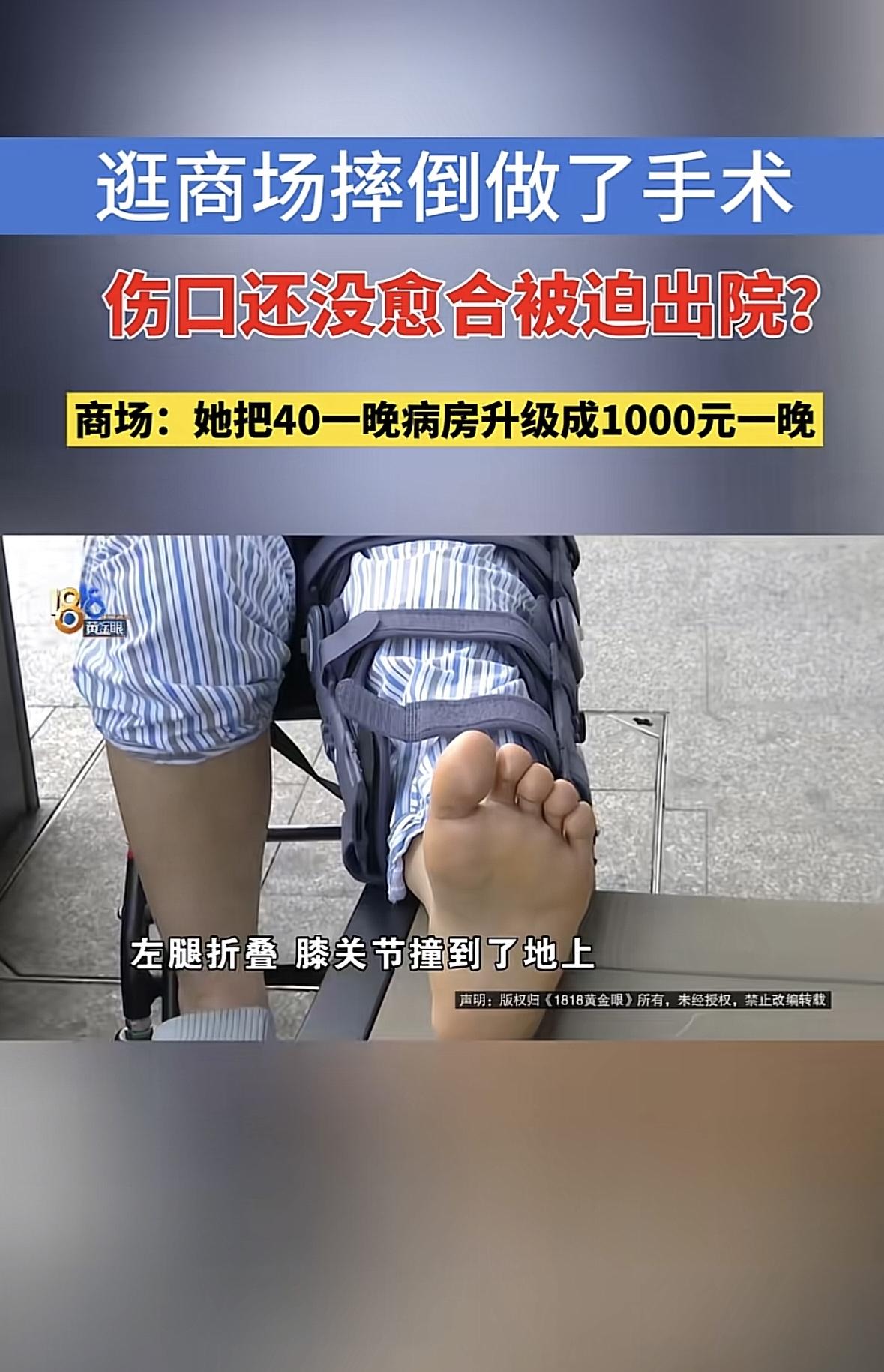 杭州,女子在商场滑倒了,还没康复就被迫出院,她欠人家8000元,商场已经给她支付