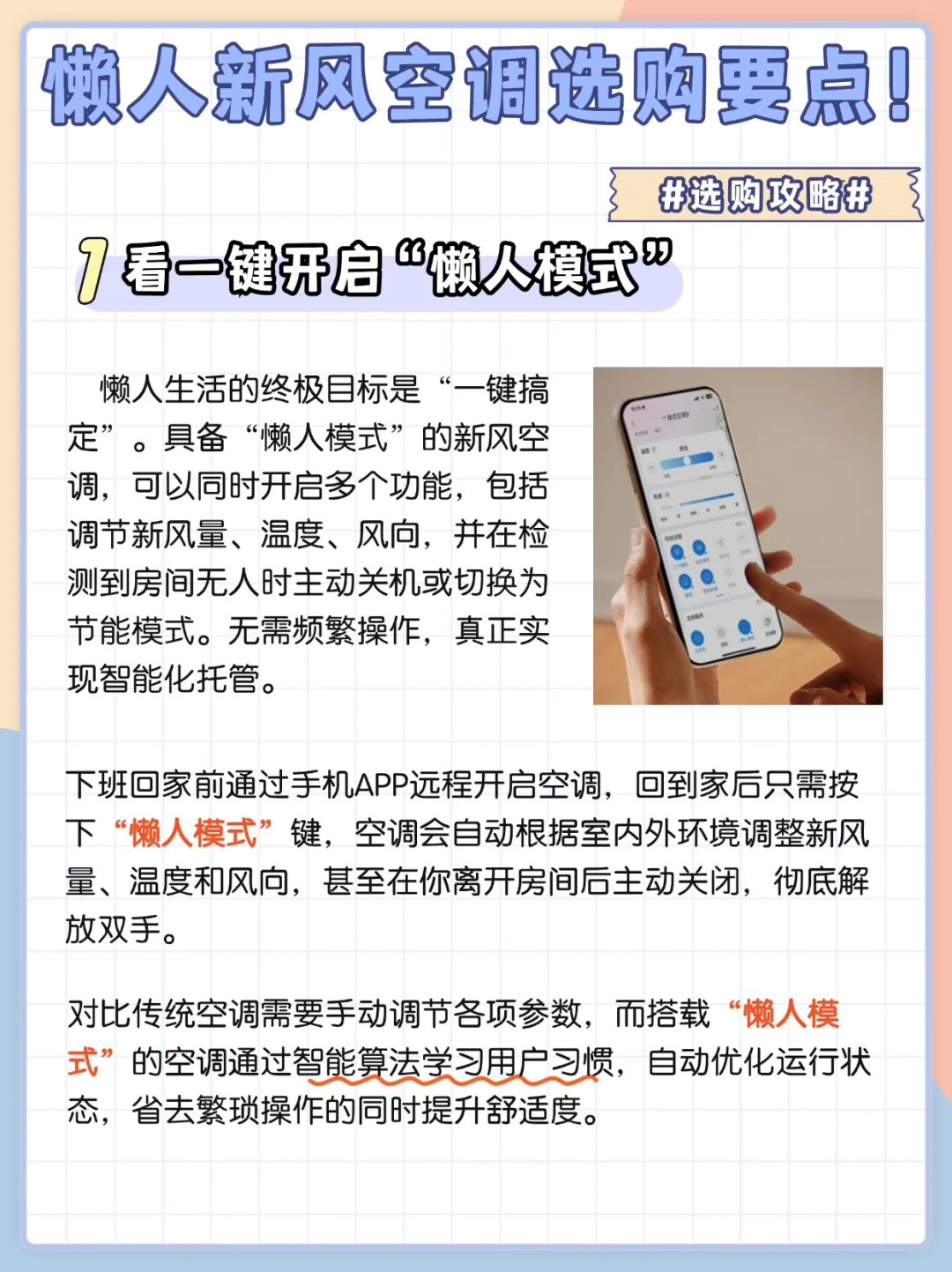 常常有人发愁:“怎样才能挑到既省心、功能还全、性能强、的新风空调?” 别着急,答案这就奉上!今天给大家精心整理了懒人必备的新风空调选购重点和那些让人眼前一亮的加分设计,看完保准你心里门儿清,轻松选到心仪的好空调!用科技让消费者省时、省力、省心,更好地享受生活,懒人救星一键即享全屋清新好空气。