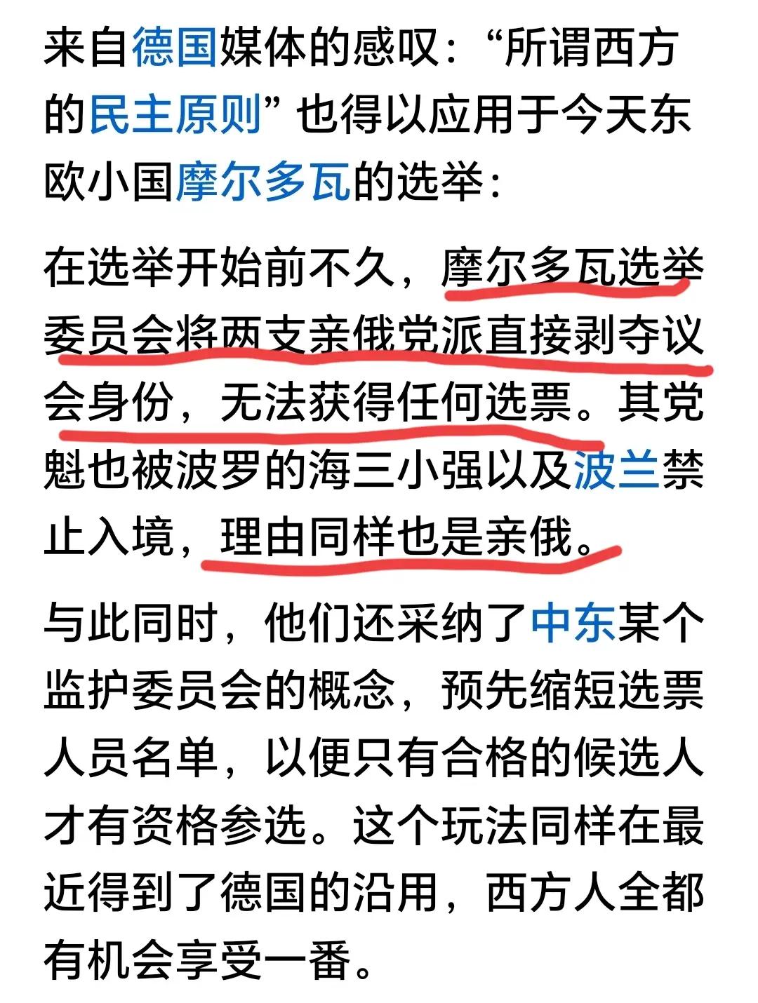 又一个乌克兰即将诞生,很多年前乌克兰就是走这条路过来的。这就是西式民选政治的真相。 什么自由民主在亲美面前都是个屁,只要你亲美,你可以专制独裁。只要你不亲美,哪怕你比美国更自由民主清廉,那也是专制独裁腐败。 明白了吗?就像现在的摩尔多瓦人,喜欢俄罗斯参加竞选就是违法的,喜欢美国?哦,那没事了。 只是不知道摩尔多瓦人知不知道乌克兰人是怎样一步一步走到了今天的。 如果不能说西式民主虚伪的话,那我就没有什么要说的了。 点右上角关注我,我们一起看这个魔幻的世界