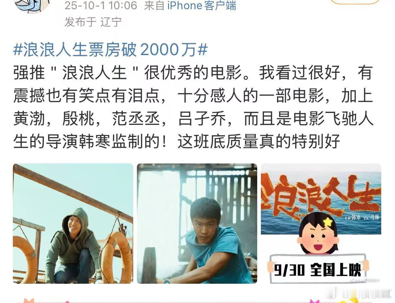 浪浪人生票房破2000万 被自来水安利到了!《浪浪人生》好评如潮,假期必须去影院见证这家人如何疯出精彩、浪出温暖