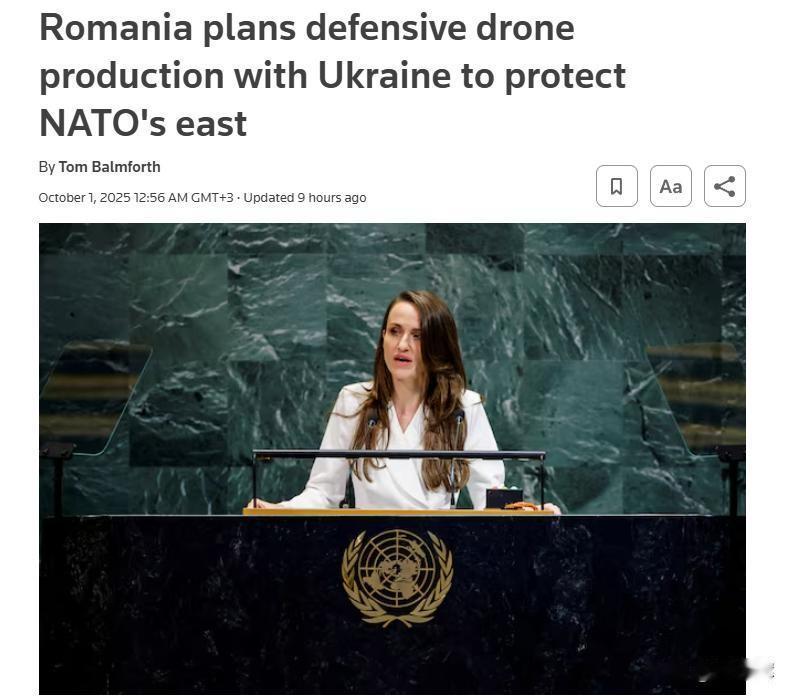 10月1日,路透社消息,乌克兰与罗马尼亚将启动无人机联合生产项目。 该通讯社援引罗马尼亚外长的话称,罗马尼亚计划在本国境内快速推进军用无人机生产,产品既供本国使用,也将供应给欧盟及北约盟友。 报道指出,早在罗马尼亚及其他国家领空多次遭遇无人机入侵之前,双方就已启动关于合作生产无人机的谈判。