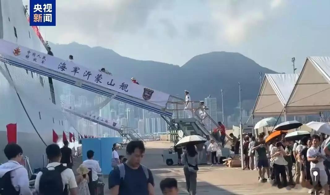 香港市民当天一大早就守候在军营大门外,期盼第一时间一睹两艘军舰的风采。这也是两艘军舰首次来到香港。当天早上军营里特别举行了升旗仪式,庆祝中华人民共和国成立76周年。