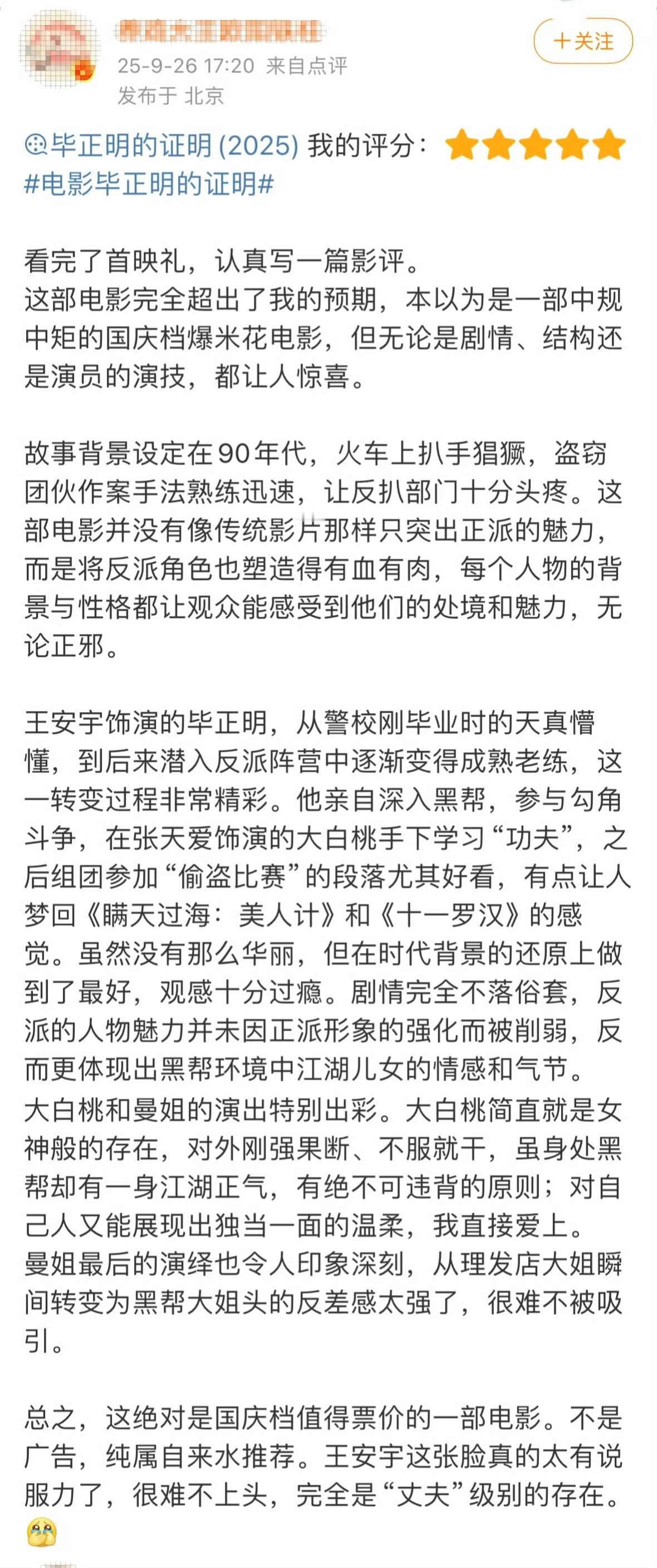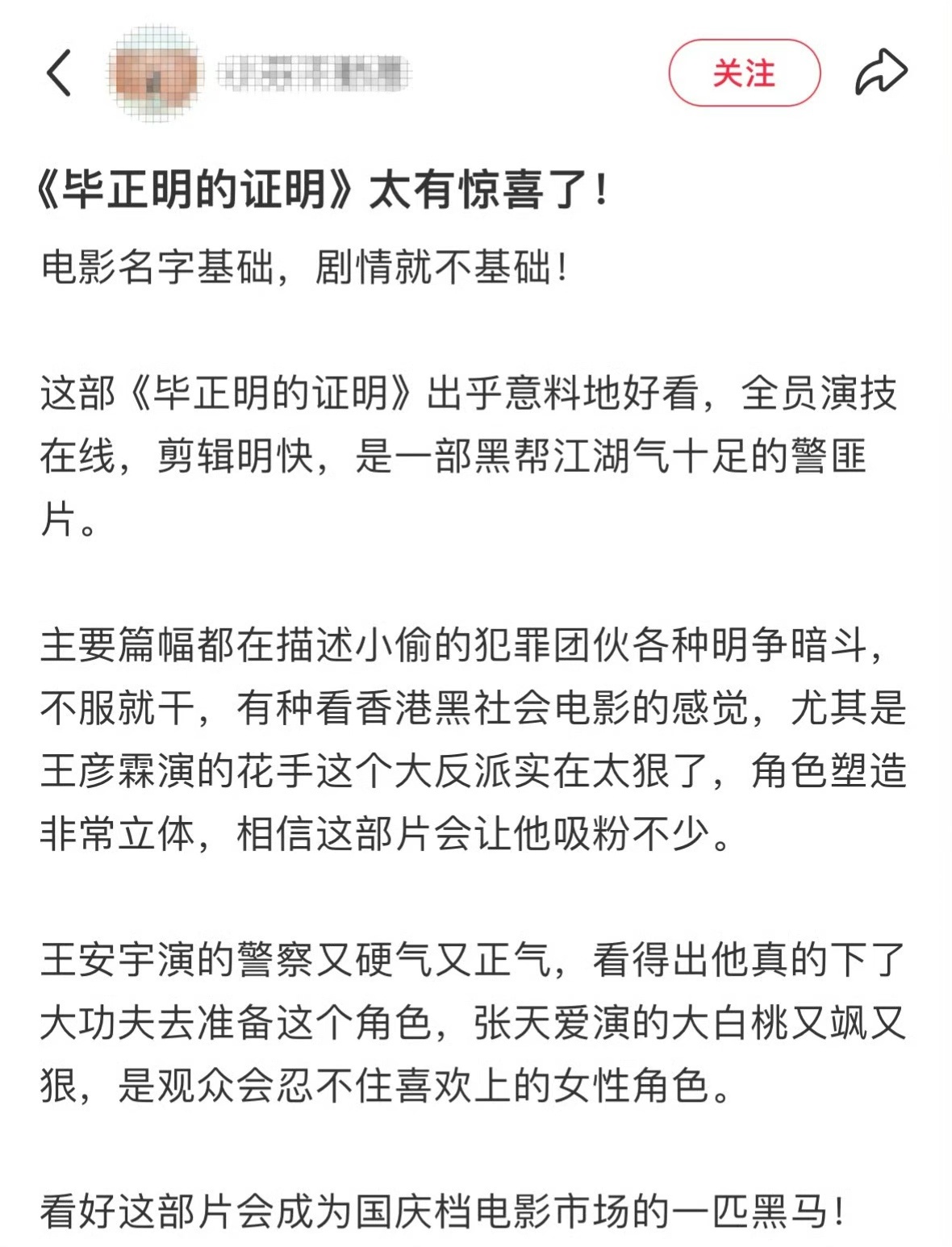 只要看《毕正明的证明》就能知道,全靠臀大肌支棱着,一刻也不敢错过,因为生怕会错过俺爱的爽点!王安宇饰演的毕正明一开头就出岔子,从警校初出茅庐的稚嫩再到潜伏,成熟老练的转变实在太惊艳了,故事不落于俗套,一下子勾住人心,塑造有血有肉的,看得我大呼过瘾,故事最后的落点就是毕正明在证明中毕业,有种谜面就是谜底的轻巧,太妙了啊!