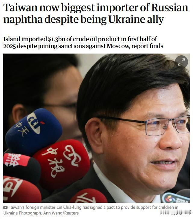 【外媒:台湾岛成为俄罗斯石油最大进口方,尽管其是乌克兰的盟友】《卫报》报道,2025年上半年,尽管台湾岛加入了针对莫斯科的制裁,但仍进口了价值13亿美元的俄罗斯石油。与2024年上半年的数据相比,台湾今年进口的俄罗斯石油增长了44%。