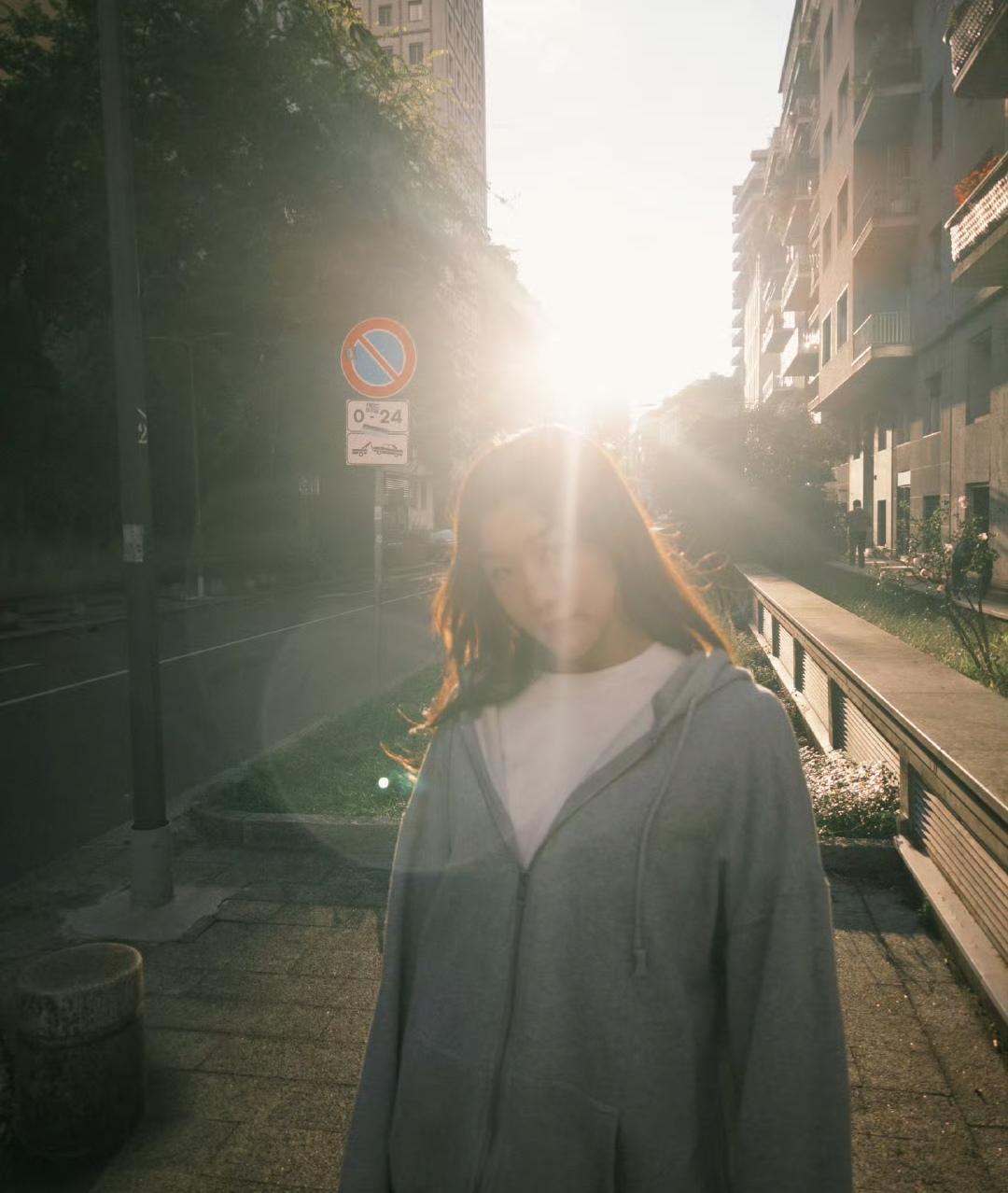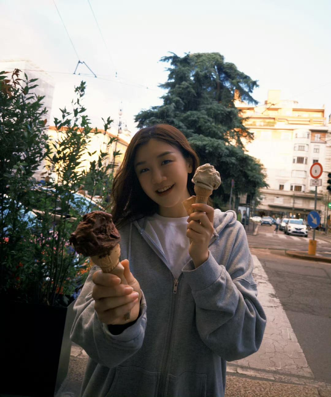 工作之余的陈梦是这样子的: 在街上拿着冰淇淋,毫不顾及形象,享受轻松时刻。