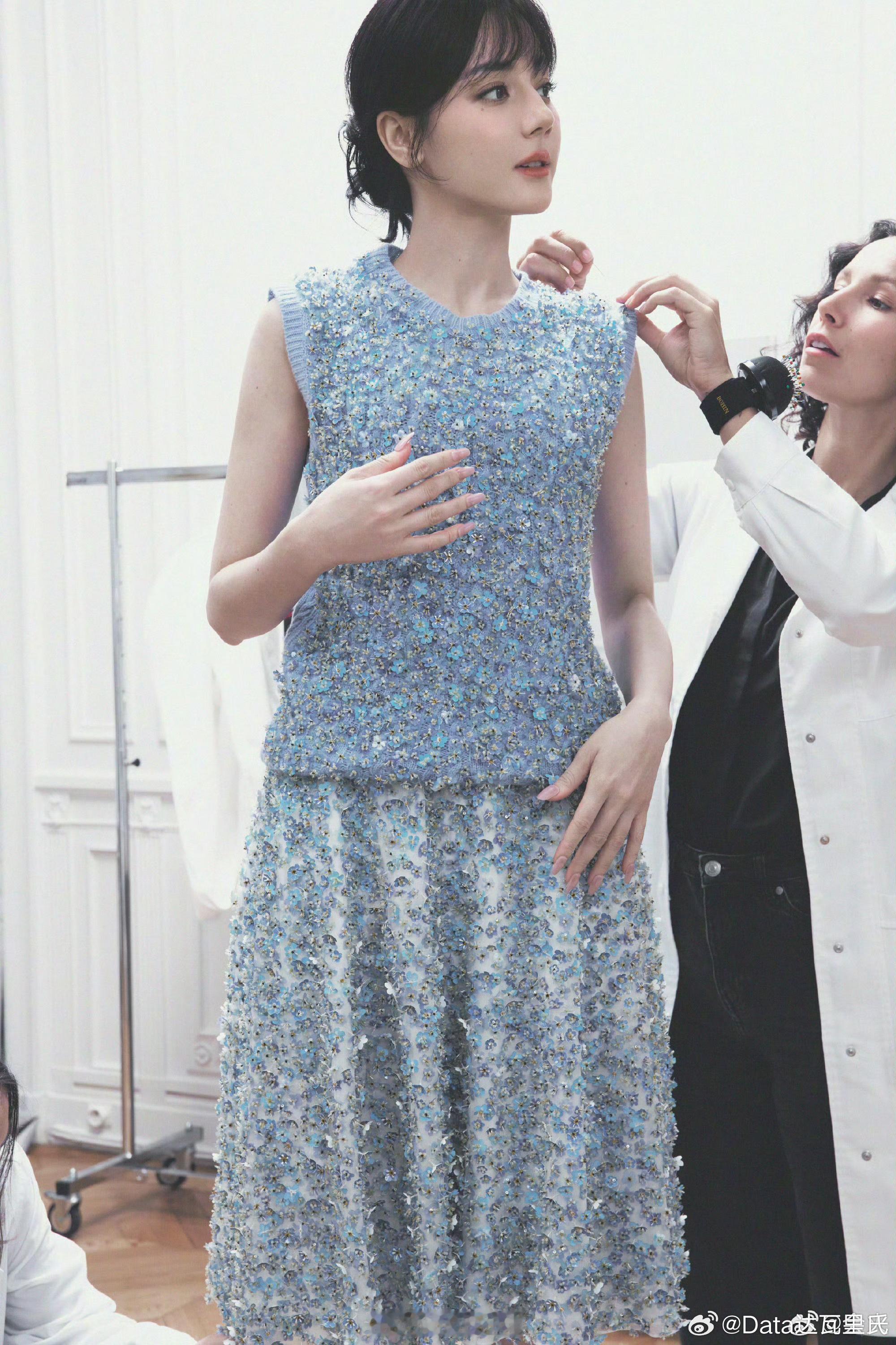 迪丽热巴蓝色无袖花朵套装Dior真的没好点的设计了吗……纯靠热巴脸和身材撑着,普通人穿一定显胖…[拜拜]