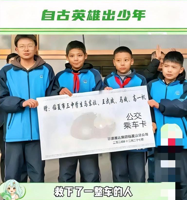 自古英雄出少年! 甘肃四名初中学生, 生死关头力挽狂澜,生死关头,他们竟救下整车人! 当公交车以60公里时速失控冲向对向车道,距离灾难不足20米时,甘肃这四名还在读初中的少年,用教科书级的协作上演了“生死救援”! 去年,甘肃一辆公交车司机突发急性心梗昏迷,车辆瞬间失控。16岁的马东拉第一个反应过来,从座位跃起冲到驾驶座旁,一边拉着司机裤腿,一边猛拍刹车踏板。 后门的王武斌火速解下围巾固定司机,马斌和高一帆紧接着冲上来死死把住方向盘。四个少年分工明确,两人控方向、两人保制动,硬是让8吨重的公交车紧贴护栏滑行了30米后稳稳停下。 停车后他们没停手,马东拉做胸外按压,王武斌打120,高一帆开应急门疏散乘客,马斌找急救药塞司机舌下。一系列操作环环相扣,最终司机抢救及时恢复心跳。 这哪是初中生,明明是临危不乱的“少年英雄团”!他们的冷静、协作和勇气,是不是也刷新了你对少年的认知?你身边有这样的“小英雄”故事吗?来评论区聊聊~