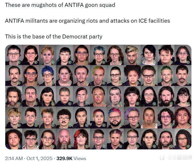 这些是安提法暴徒的拘捕照。安提法恐怖分子正在组织骚乱,并袭击移民执法局(ICE)