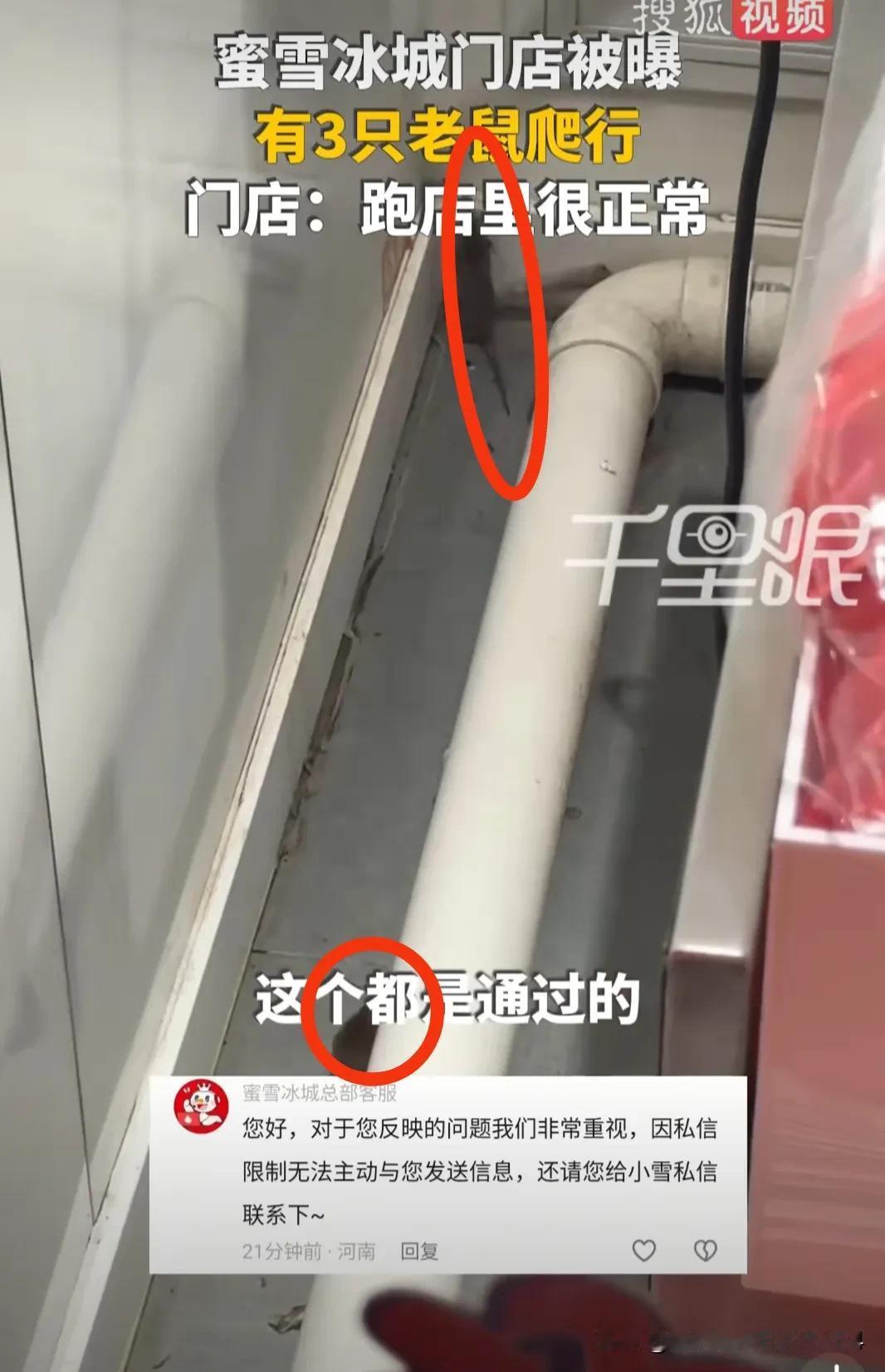 “旁边都是饭店,老鼠想进来我也没办法”。雪王一家门店被曝有多只老鼠横行,店员还喊同事围观。事后涉事门店员工表示:昨天老鼠已经处理了,旁边都是饭店,它想进来我也没办法,按照公司标准赔偿的,公司每月都会抽查门店卫生,都是验收通过了的。 上次隔夜柠檬的事,大家都表示能包容,可这次老鼠事件让很多网友破防。有的网友说,之前的隔夜柠檬我能无限包容,但是老鼠有点害怕,赶快处理好,小雪我还是对你宽容的[流泪][流泪][流泪] 又有网友说,不能把消费者对你的宽容当做资本啊,卫生这么差,是怎么通过检查的? 还有网友说,别说蜜雪,任何一家餐饮店就算是五星级酒店后厨都不能保证100%没有老鼠。 说实话,蜜雪因为便宜,又是到处可见的连锁店,我经常买来喝,总想着要比其他没名没姓的小店靠谱点。可这次我也有点失望了,隔夜柠檬无所谓,老鼠可是带着很多病菌的 对此,你们怎么看?厨房惊现老鼠