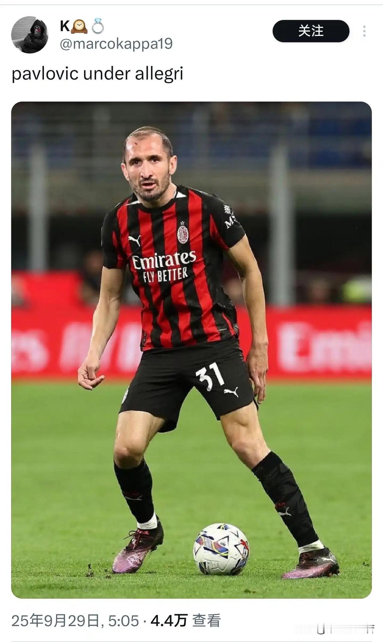 帕夫洛维奇!帕夫洛维奇与基耶利尼的合体为帕夫利尼?在半月的时候阿莱格里接受采访曾经说过帕夫洛维奇是一名十分出色的球员,他拥有巨大的潜力,他具备成为优秀后卫的一切潜质。 在联赛刚刚开始时候阿莱格里说的是帕夫洛维奇是一位十分出色的球员,他很像我曾经执教过的一位球员,他的技术特点和基耶利尼很相似,我觉得他能成长为基耶利尼式的球员。昨天阿莱格里说的是帕夫洛维奇与那不勒斯之战表现出色?帕夫洛维奇一直都是一名出色的球员,他是米兰后防线的重要球员,我觉得他与基耶利尼特点还是有些差异,但帕夫洛维奇同样出色,他的未来会与基耶利尼一样,拥有辉煌的职业生涯。 除了图P的有点违和感,剩下的个人觉得确实没啥违和感,帕夫洛维奇拥有出色的身体天赋,对抗与绝对速度在帕夫洛维奇身上是并存的,这是很少见的事情,这充分说明了帕夫洛维奇确实有天赋,在阿莱格里的调教下帕夫洛维奇只要改掉莽夫属性,帕夫洛维奇确实有成为一线球星的可能性。