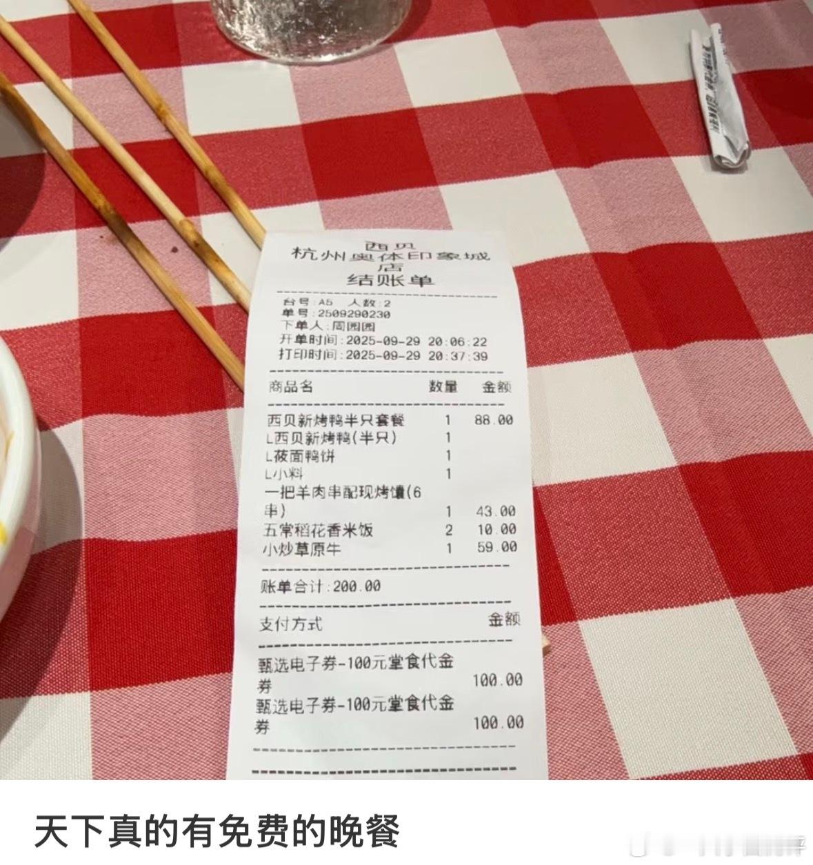 有人西贝点单200元实付0元吃人嘴短[doge]免费的就不好意思说什么了,当时给