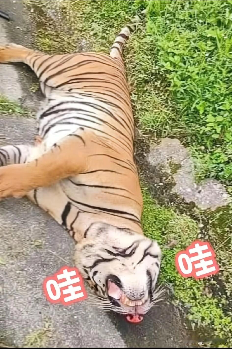 这老虎看着不是本地的,这回知道车祸猛于虎了吧,保险公司懵逼了,这可咋赔偿啊 这老