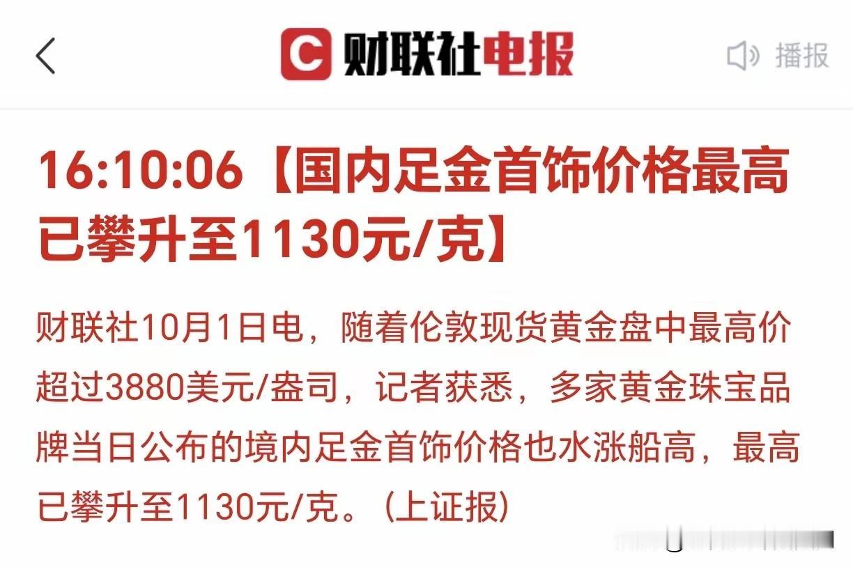 一觉醒来,购金人集体沉默 不是因为金价又破纪录,也不是因为国庆逛街人挤人,而是发现去年犹豫没买的那根金链子,如今多掏了一个月菜钱。今天凌晨,国际金价稳稳踩上3890美元/盎司,国内周生生足金挂牌价冲到1130元/克,周大福、老凤祥等品牌紧跟其后,每克1125元起步。 金价疯涨背后藏着三条暗线:美联储10月降息预期高达97%,美国政府停摆危机逼得资金往黄金里躲,地缘冲突像乌克兰局势还在添柴加火。金属交易员们凌晨盯盘时发现,金价半小时内拉升超1%,但技术指标已亮超买红灯,昨天刚经历一波70美元跳水——高位追涨的人秒懂什么叫心跳游戏。 普通人买金的心态正悄悄分裂。婚庆刚需族边掏钱边嘀咕“就当存嫁妆”,投资老手却开始打量黄金ETF——华夏黄金ETF管理费最近降到0.15%,全市场最低,机构资金正疯狂涌入。更少人注意到,黄金早已不是首饰盒里的古董:AI芯片要用金线连接,自动驾驶传感器镀金防腐蚀,连太阳能电池都靠纳米金提升转化率。 别看现在金价傲视群雄,历史数据泼了盆冷水——过去6轮美联储降息周期里,黄金上涨概率约67%,但平均涨幅仅8.1%。BMO资本预测明年金价能冲4400美元,瑞银更看到4200美元,可短线追高难免被套。有分析师直言,日线RSI已飙到78,回调压力像拉满的弓。 黄金这场狂欢里,最稳的或许是三年前低位布局的人。1614美元进场的持仓者,如今收益超66%。但新入场的人得想清楚:你是在对抗通胀,还是成了情绪买单的最后一棒?