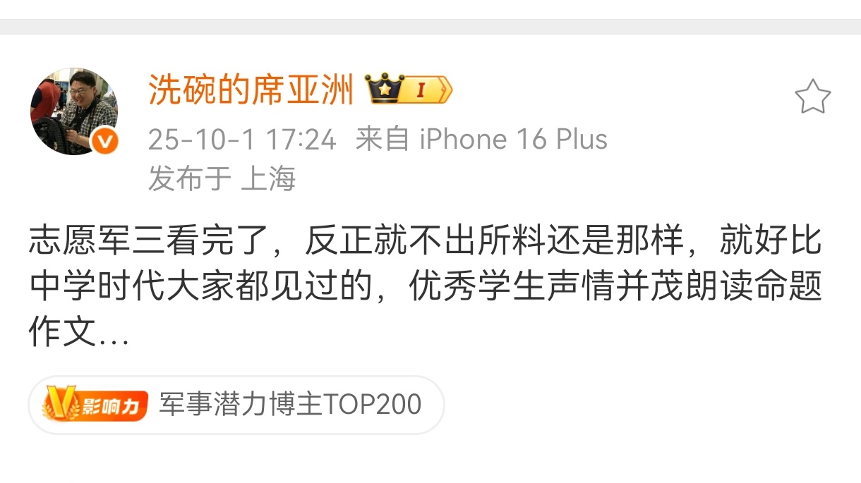 关于志愿军3,总算看见有人说实话了……真的是可惜了这么好的资源,喜欢志愿军题材的真的不如自己去网上看电视剧《功勋》,《跨过鸭绿江》,网络电影《特级英雄黄继光》《杨根思》。