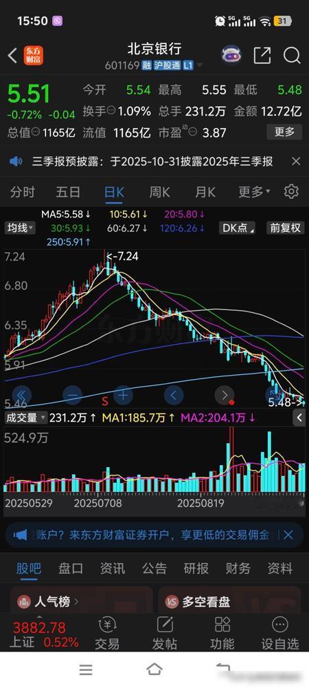 四大最惨银行股开盘遭惨烈砸盘跳水再创新低,民生银行4.01平开前几分钟还算平稳,突然几万手几万手砸盘涌出直线跳水创新低,不过在3.96企稳,市净率仅仅只有0.31,天天两万多亿的牛市行情空头怎么忍心砸盘。 今天看盘真替这几家银行股委屈——华夏银行早盘跳水后,午后两点半又被砸到逼近6.5元,市净率0.34,股息率超5%;光大银行跌破3.4元,市净率0.41;北京银行开盘就跳水破5.5元,市净率0.42。这估值全跌回2700-2800点的水平,硬生生比现在大盘少涨了1000点。 咱们老股民都知道,银行股本来就是压舱石,现在市净率低成这样,股息率还比不少理财高,按理说该是“香饽饽”。可资金偏往热点里扎,把这些“便宜货”砸得稀碎。要说经济不好吧,最近数据也在回暖;要说资产质量差吧,上市银行年报也没暴雷。 我觉着啊,这波可能是短期情绪宣泄,等市场冷静下来,低估值修复是早晚的事。当然,抄底也别太急,留点耐心,但真没必要恐慌割肉——毕竟0.3倍市净率的银行股,历史上都没几次。 数据参考:同花顺iFinD银行板块实时行情(2024年X月X日)