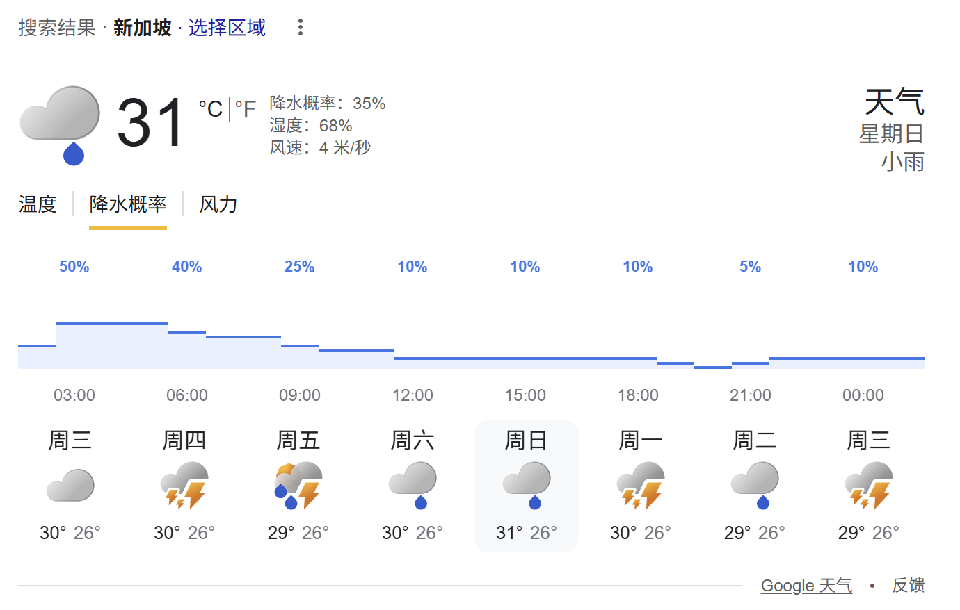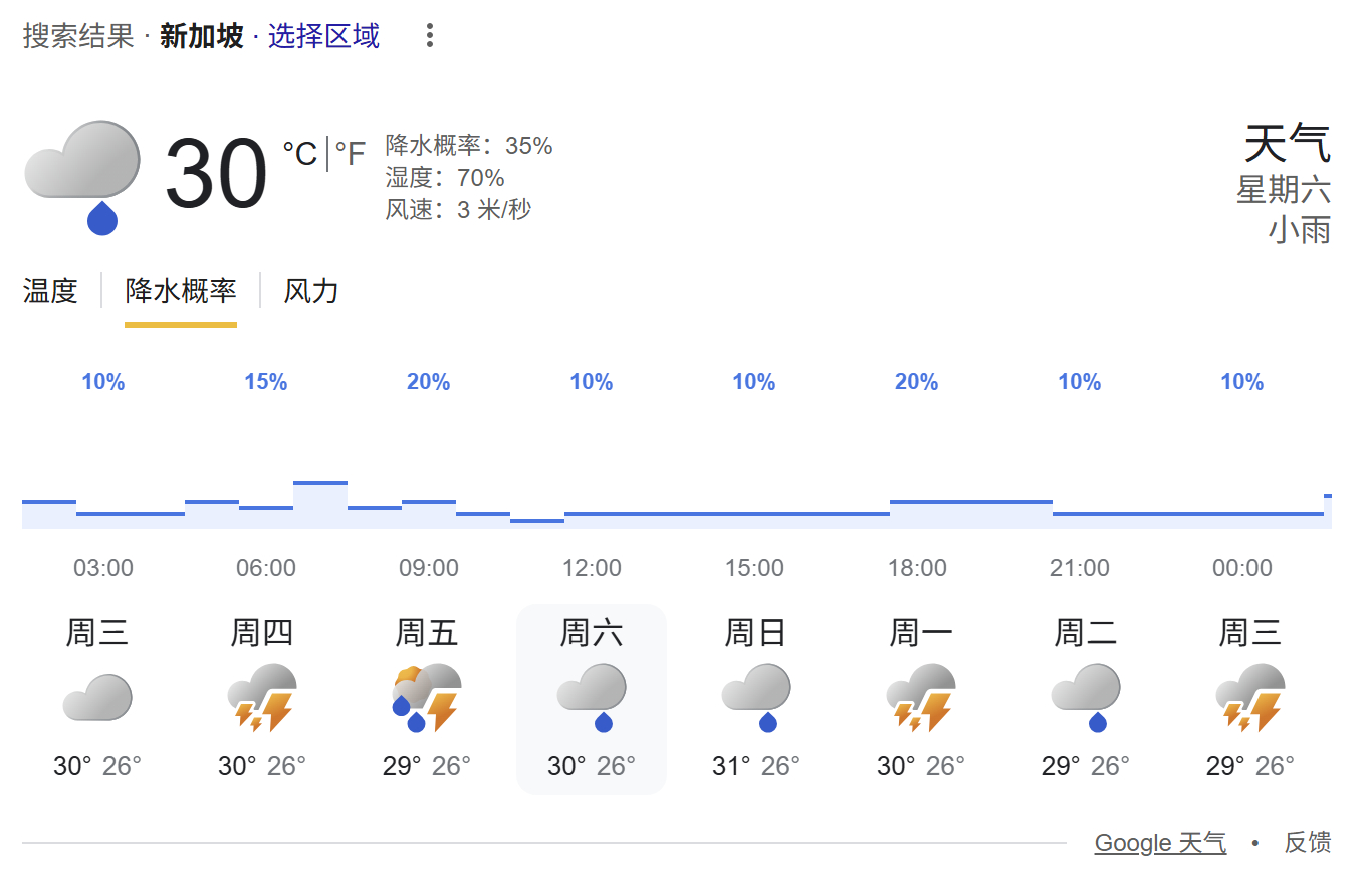 本周末新加坡大奖赛天气预报如图