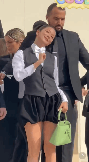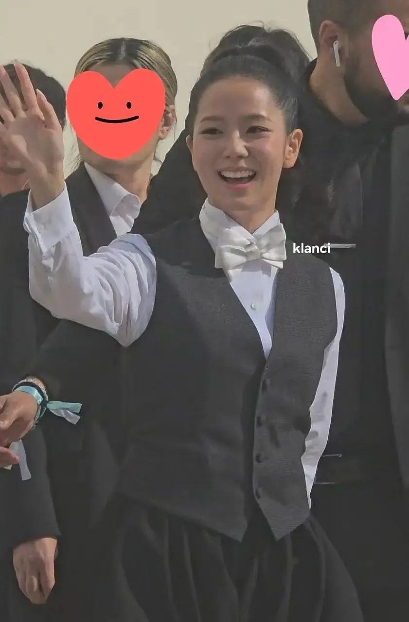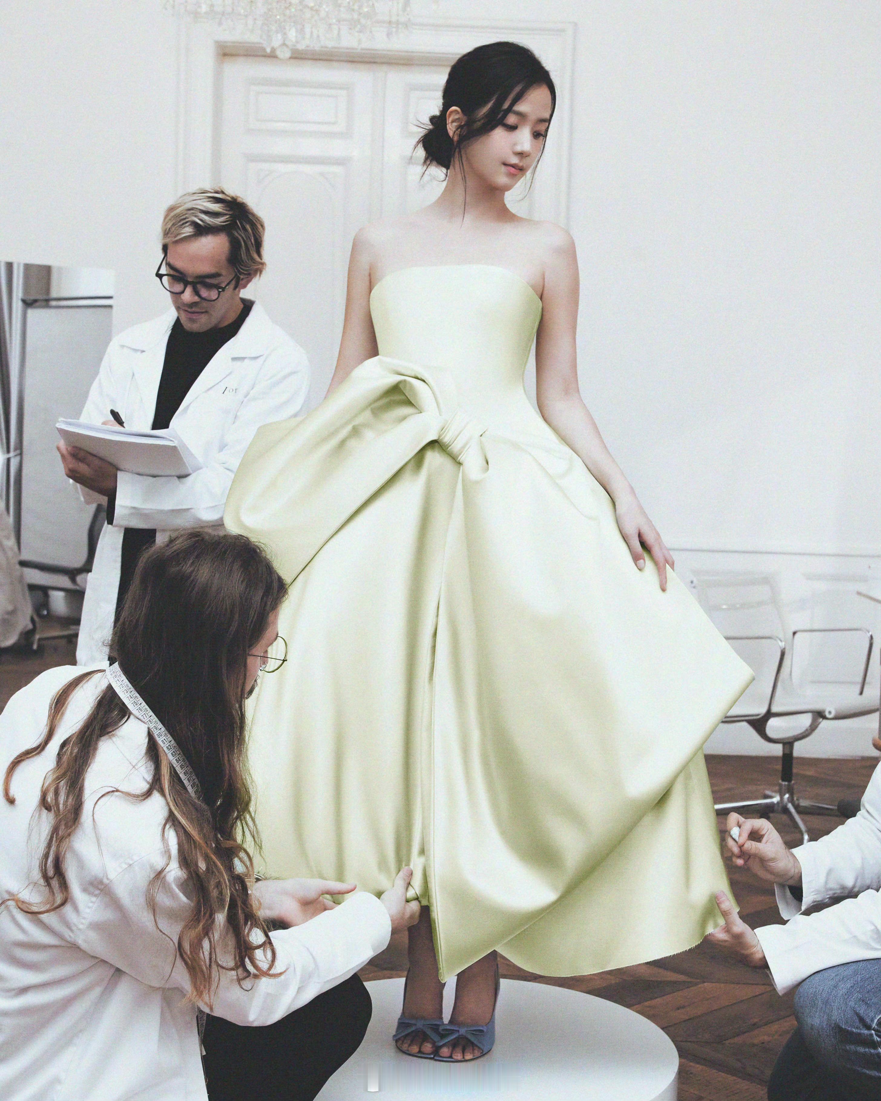 金智秀怎么没穿试装那条绿色裙子,这套真的像服务生