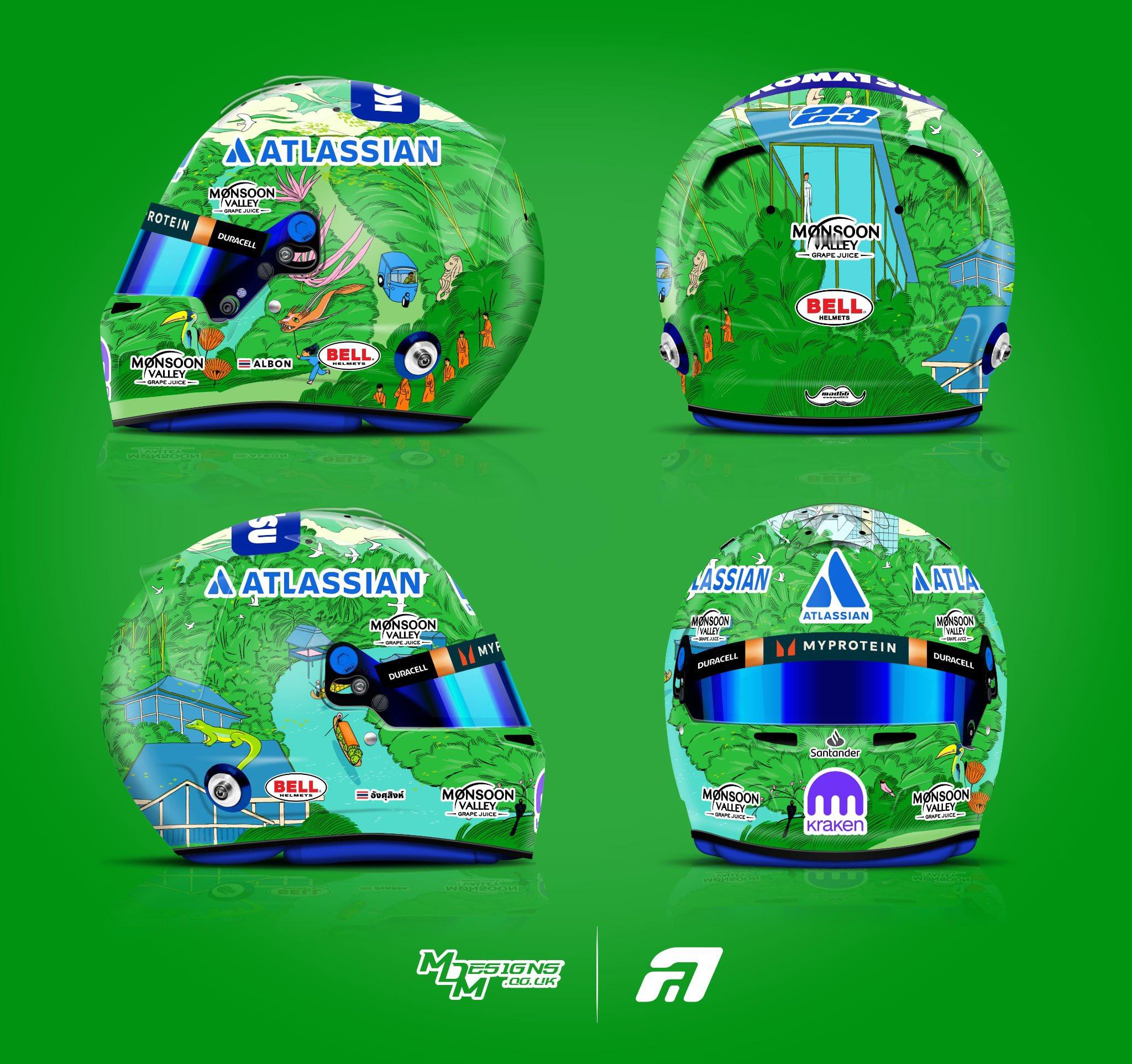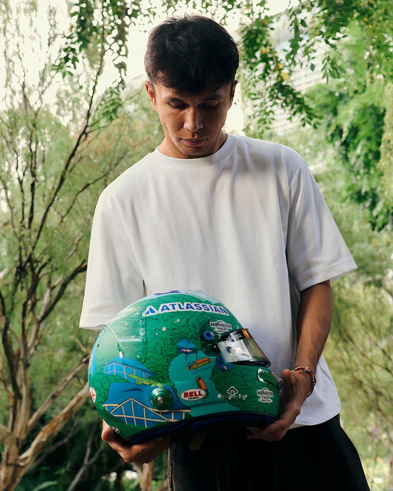 阿尔本的新加坡大奖赛特别版头盔F12025F1新加坡大奖赛