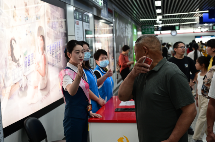 “一天都在暴走,饭也没吃。太阳晒了一会,进了地铁站就觉得不舒服了。很想吐。”游客小陈的脸色煞白。小陈一行是三个姑娘一起出来游玩,人生地不熟,不知道怎么办,地铁工作人员立刻将人带到五心服务队服务台,先泡了一杯红糖水让小陈喝下,随后还找来了在地铁站内服务的红十字会医院志愿者。“杭州地铁的工作人员,真的好贴心。”小陈说。