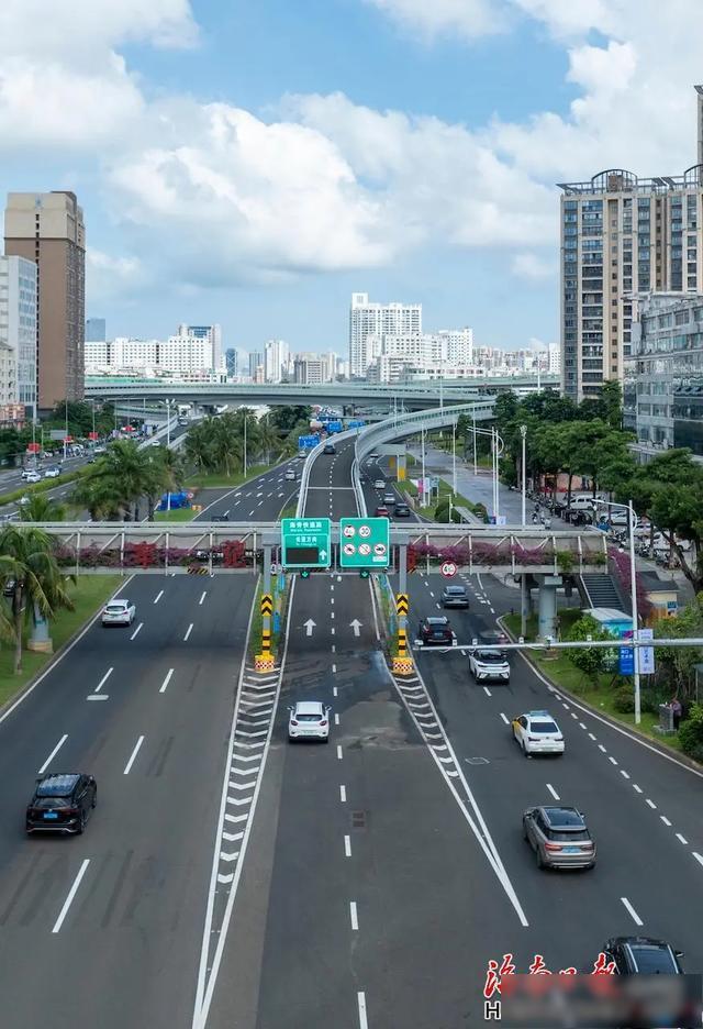 10月1日上午,车辆驶入海口海秀快速路龙昆南匝道。海南日报全媒体记者李天平摄