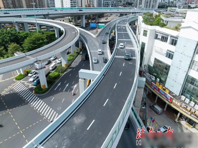 海口海秀快速路龙昆南匝道完善工程关键性工程SW匝道(龙昆南路上海秀快速路)建成通车。李天平摄