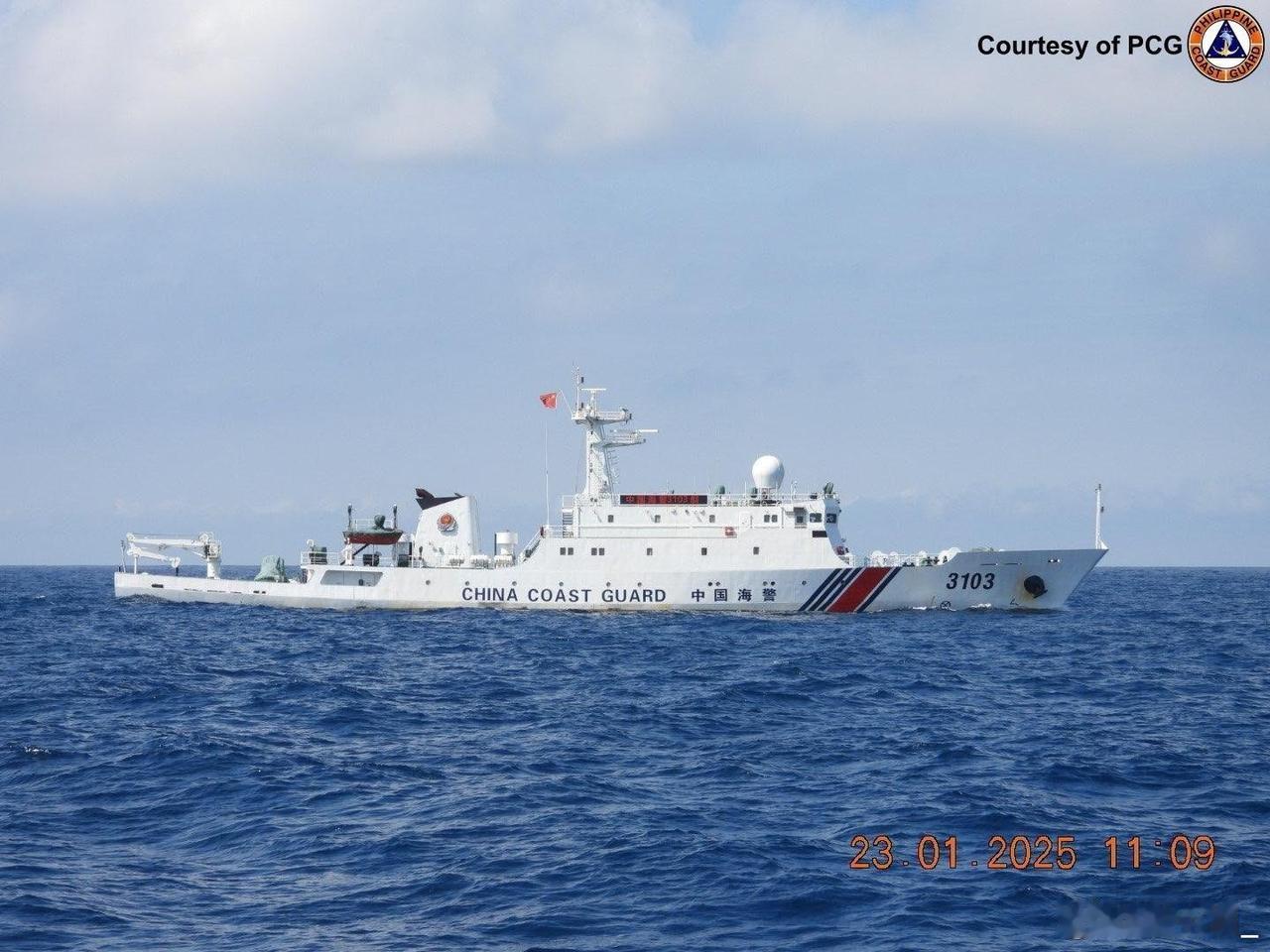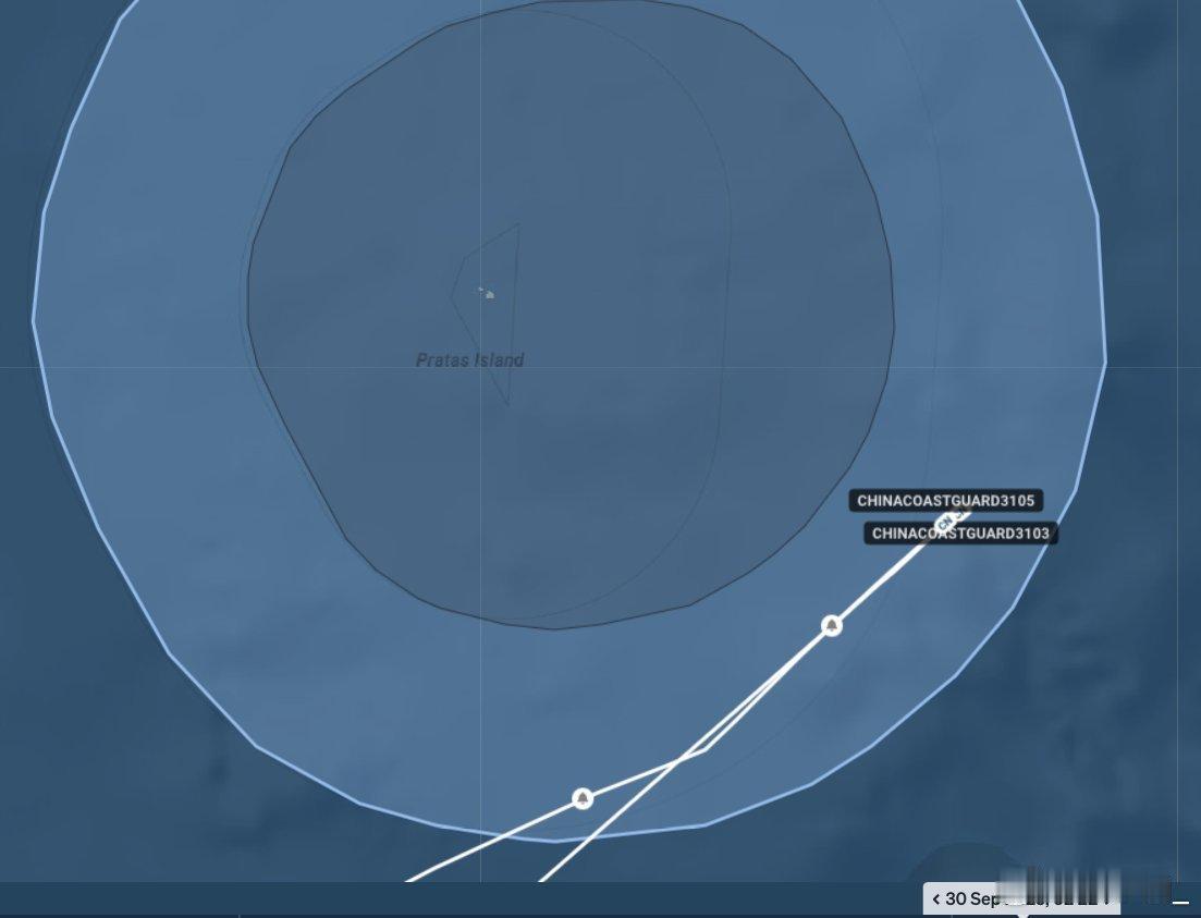 9月30日中国海警3105鹤宝舰、3103舰在东沙岛所谓“限制水域”(24海里)