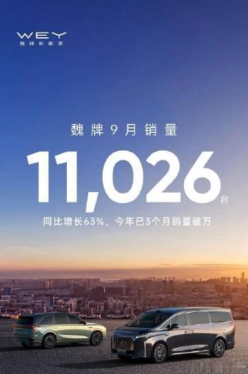 魏牌9月又回到过万的水平,达到11026辆。 长城在魏牌上下了那么大功夫,也该一