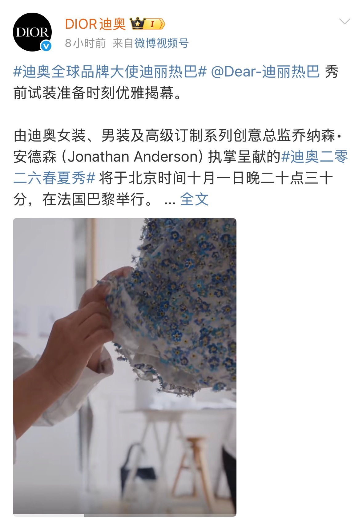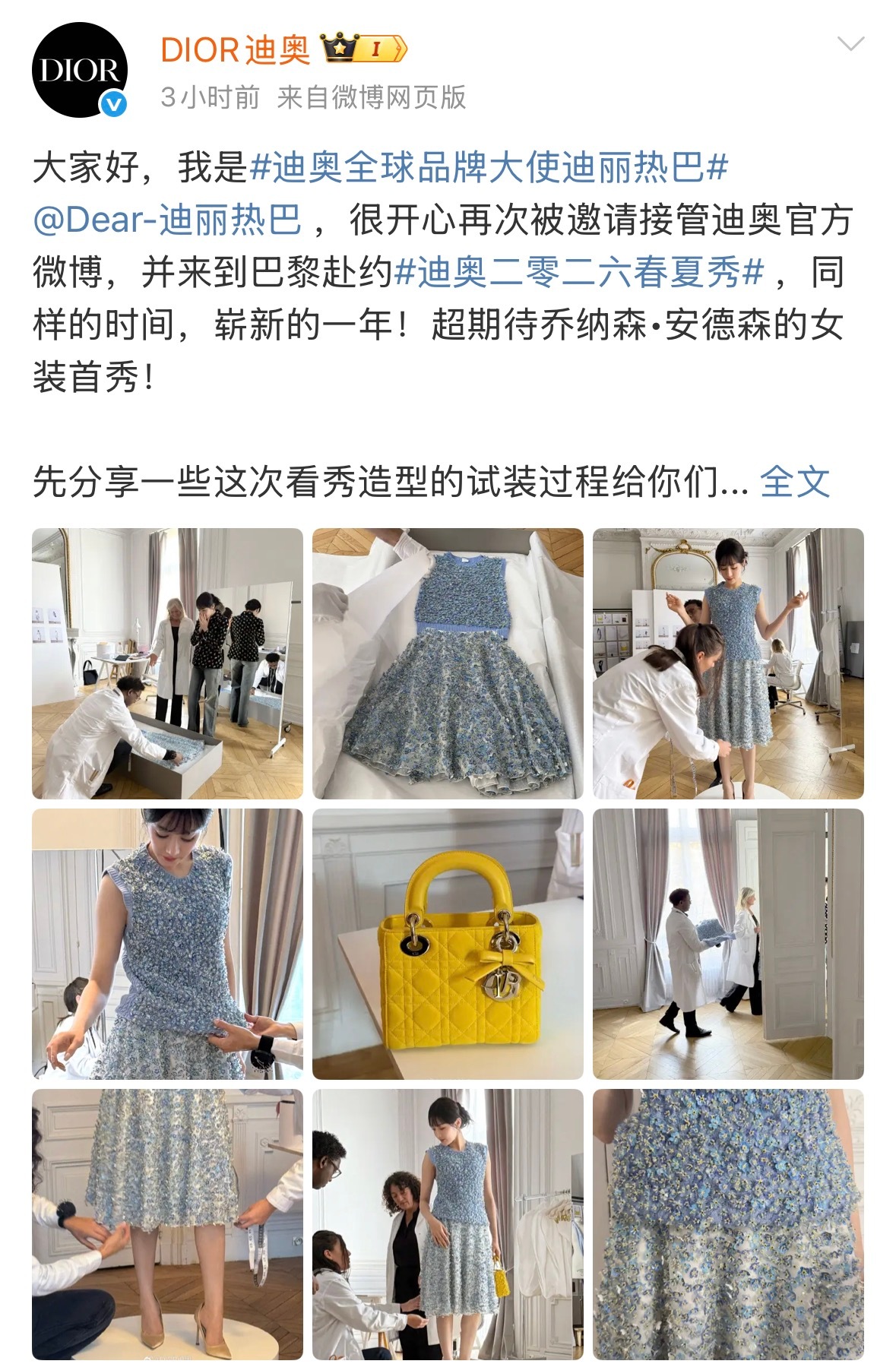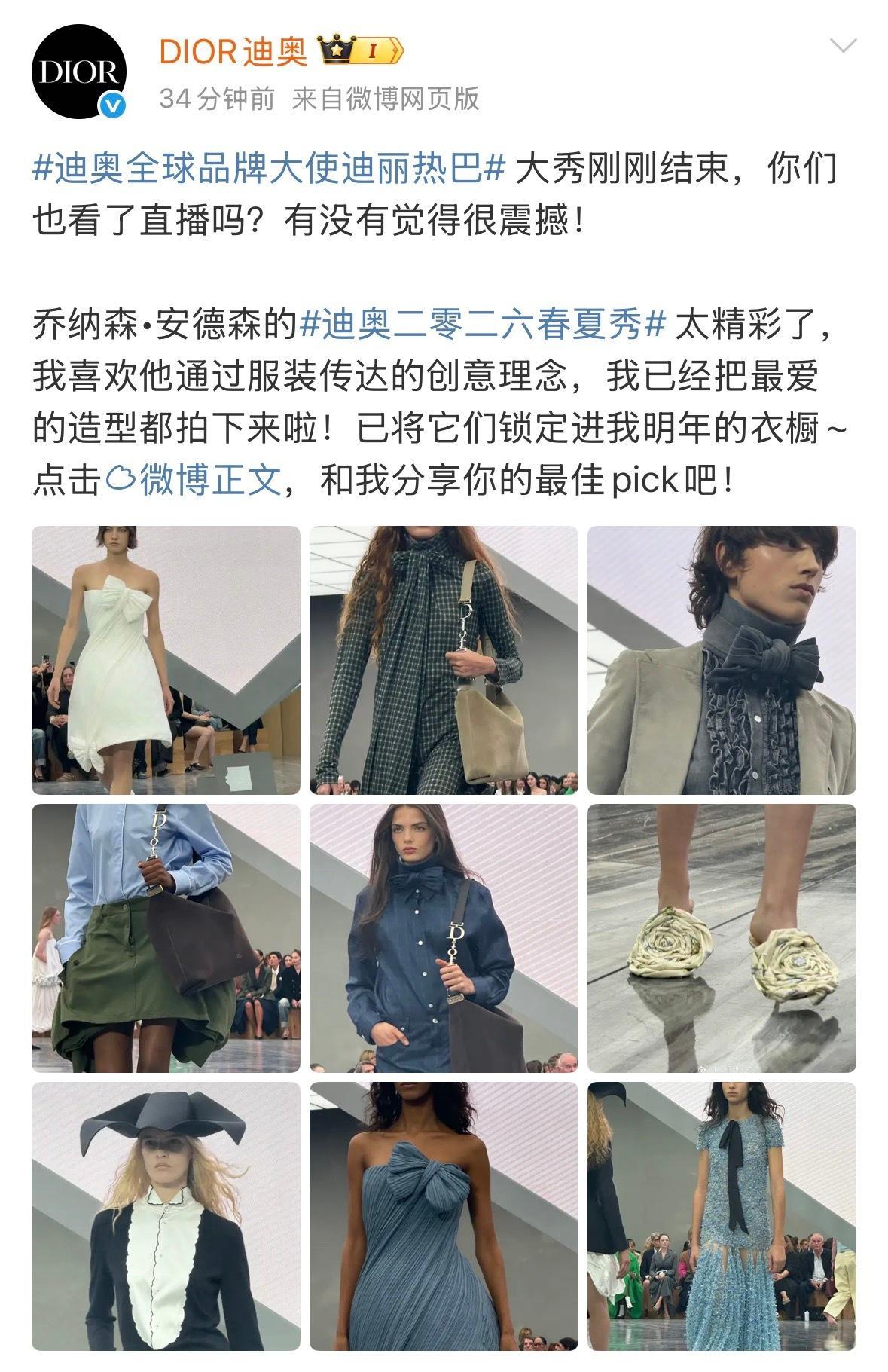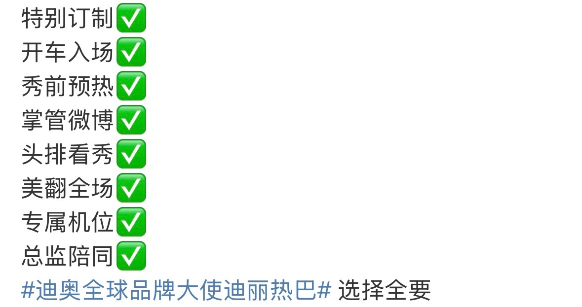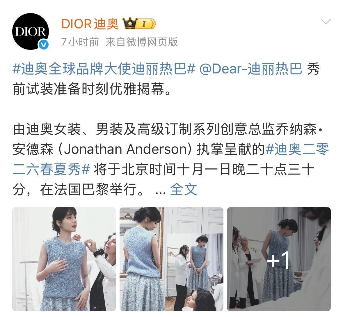 这是今天的DIOR官博以及迪丽热巴粉丝总结的待遇