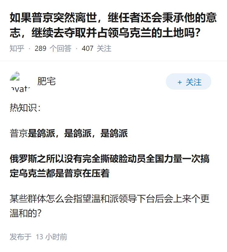 如果普京突然离世,继任者还会秉承他的意志,继续去夺取并占领乌克兰的土地吗?
