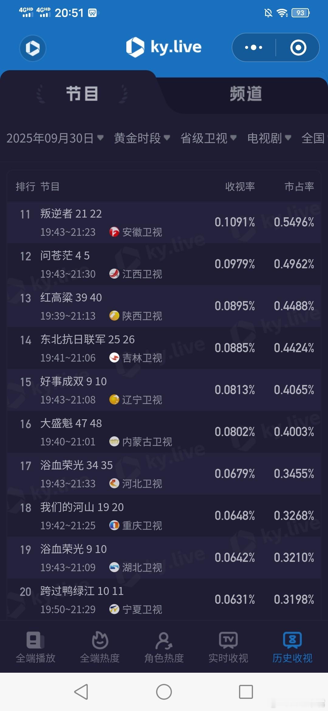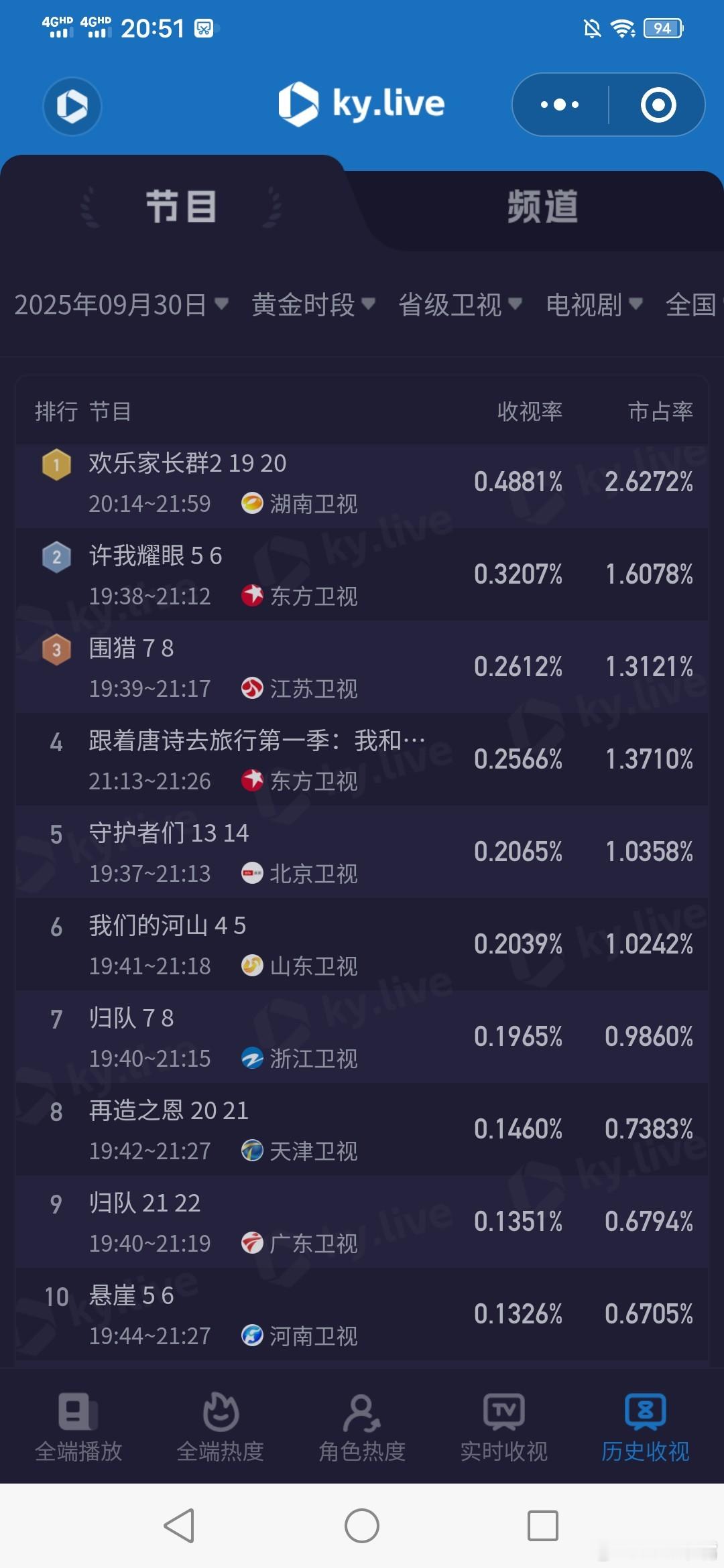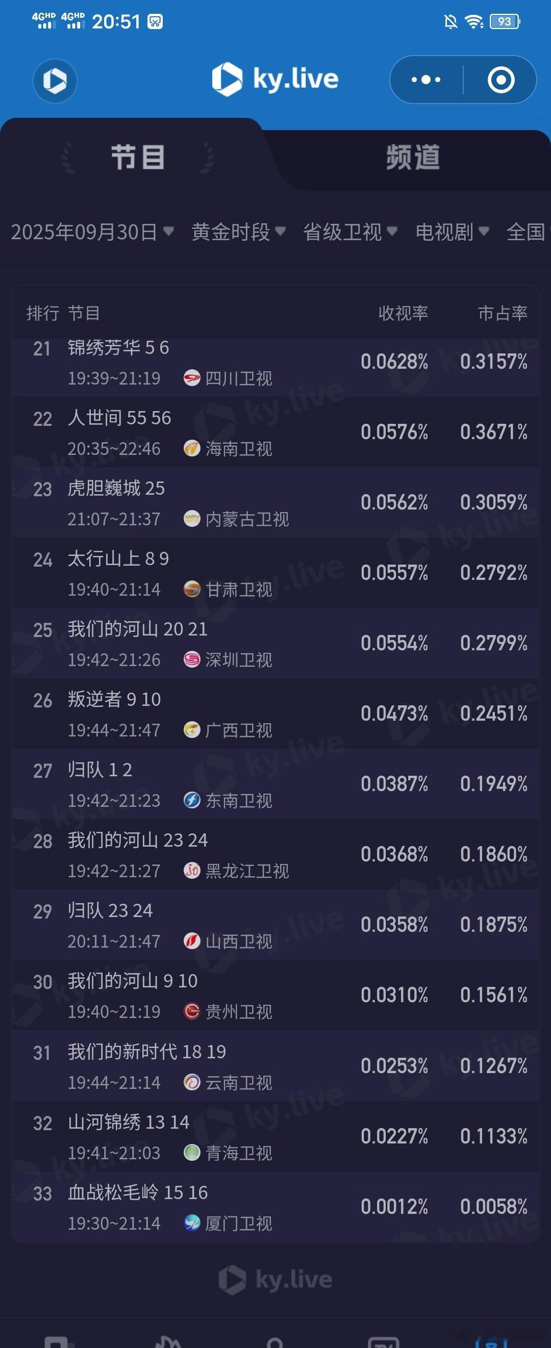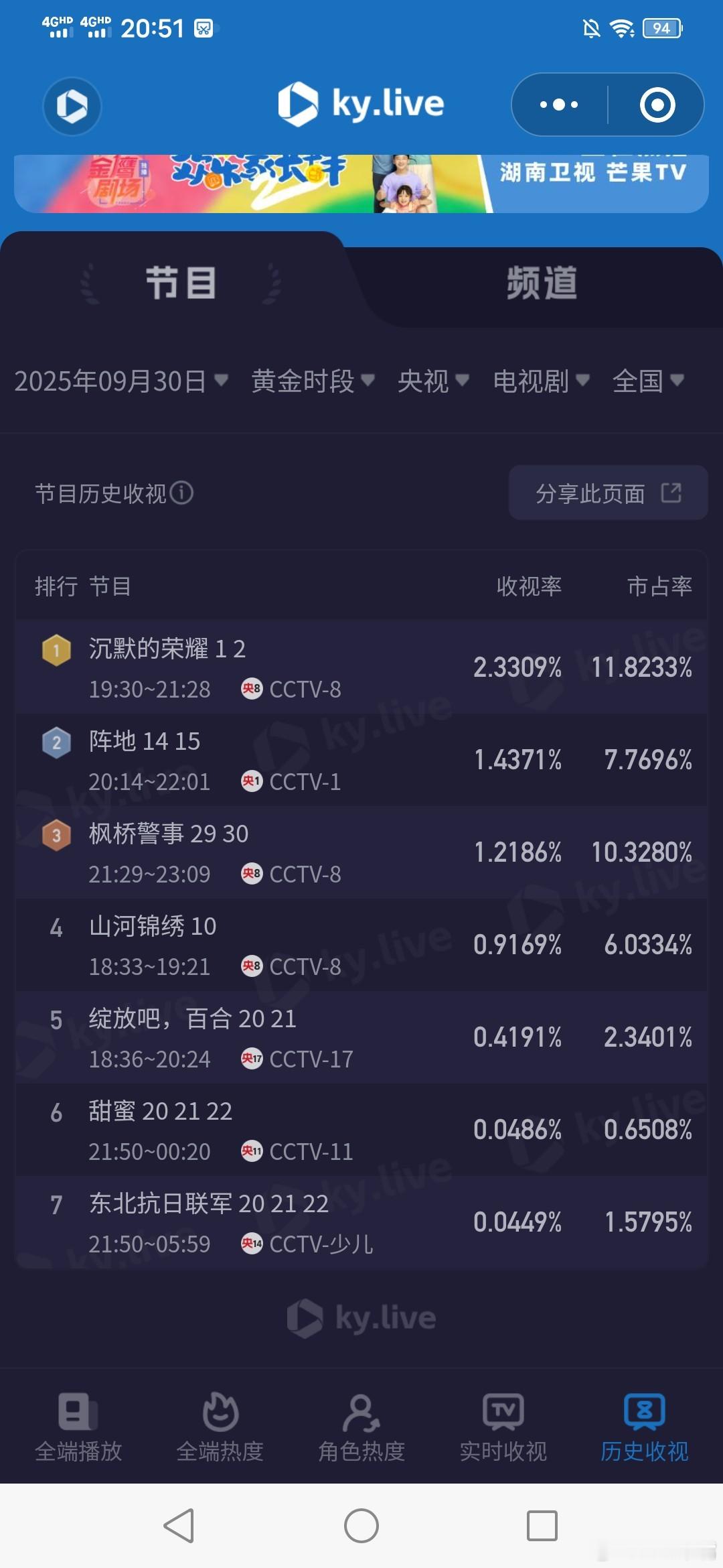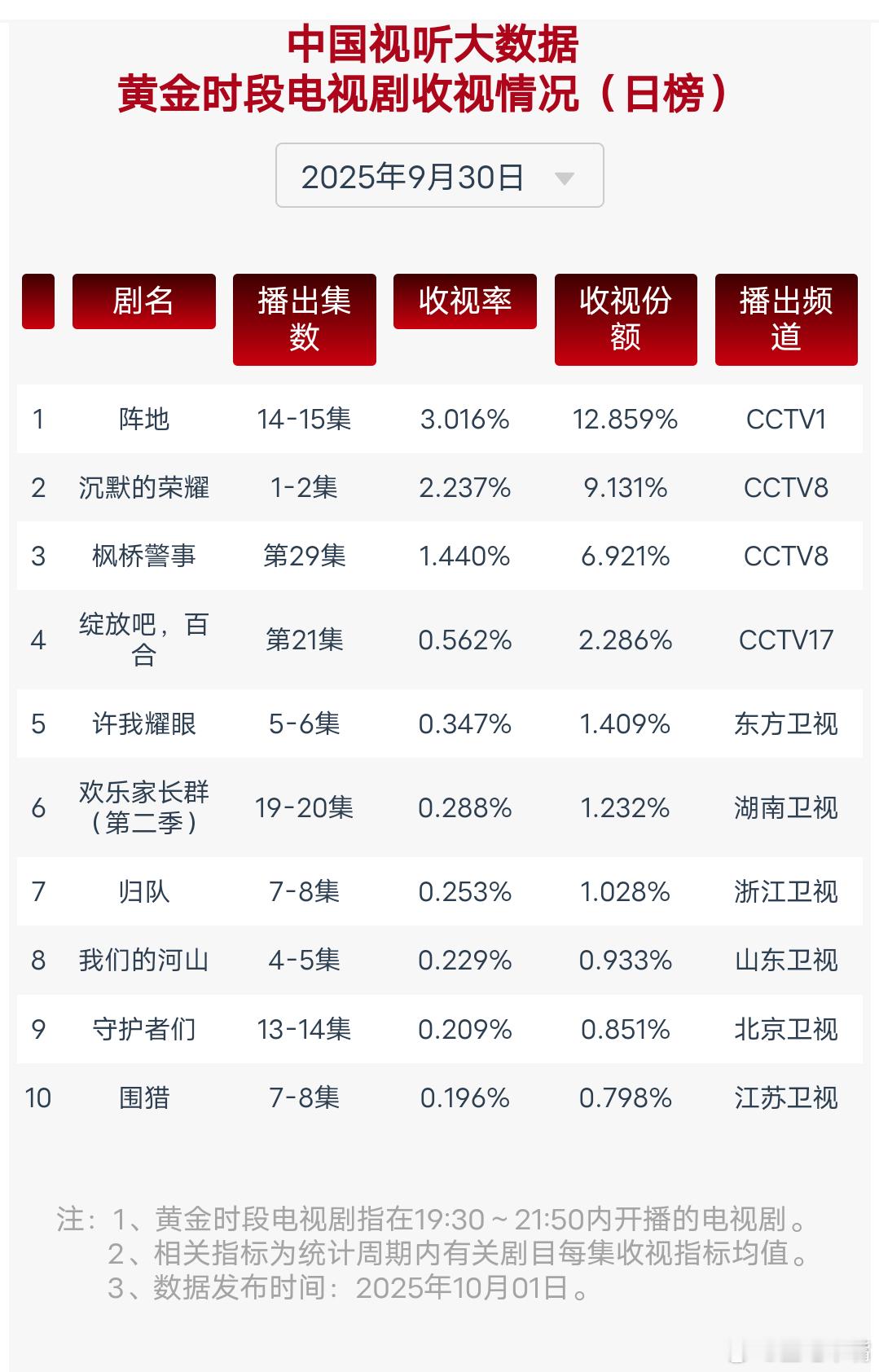 沉默的荣耀9月30日cvb收视日报,🐏系数越来越高,卫视系数越来越低!