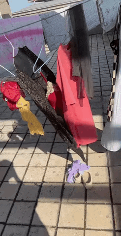 天台晾衣服, 除了雨就是风才会搞成这样。