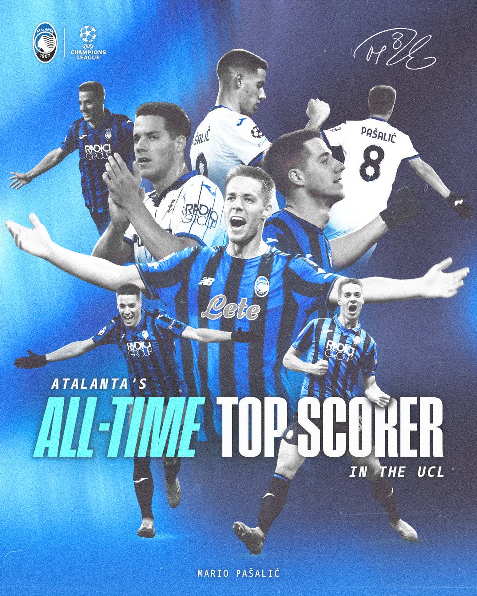 今天,亚特兰大官方也在社媒发布了海报,表示帕萨利奇成为了队史欧冠的最佳射手。