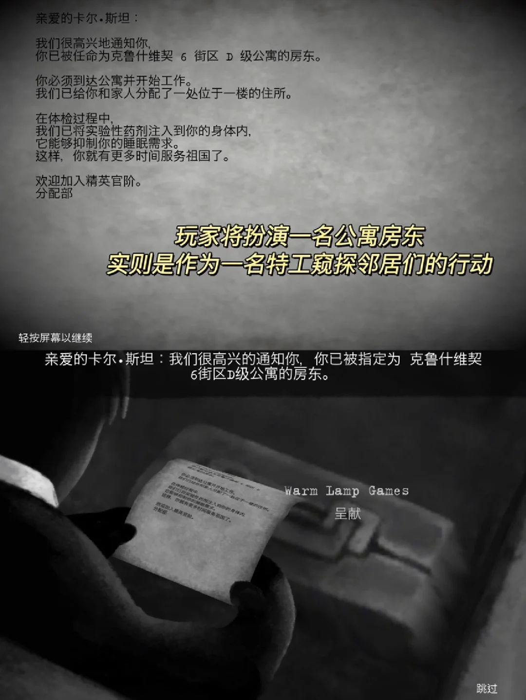 游戏名:《Beholder》 iOS (外)✅ & Android ✅ & Steam ✅ 这是一款反战反乌托邦的游戏🎮。 玩家将扮演被秘密特工被安插在公寓,而作为特工你的任务就是向上级报告状况,监督他们的一切犯罪行为。 玩家也会遇见各种状况,如你的家人会遇见各种困难,需要钱💰来解决。因为你可以通过偷窃、勒索等行为方式进行非法集资。也可帮助房客逃离组织监控。 游戏拥有多种结局,取决于你在游戏过程中所选择的分支。 - 推荐喜欢反战和剧情的姐妹👭!!! 还不冲冲冲!!