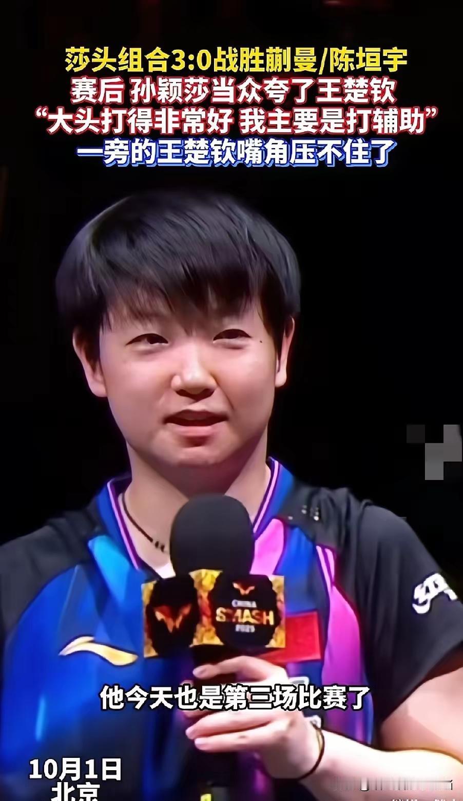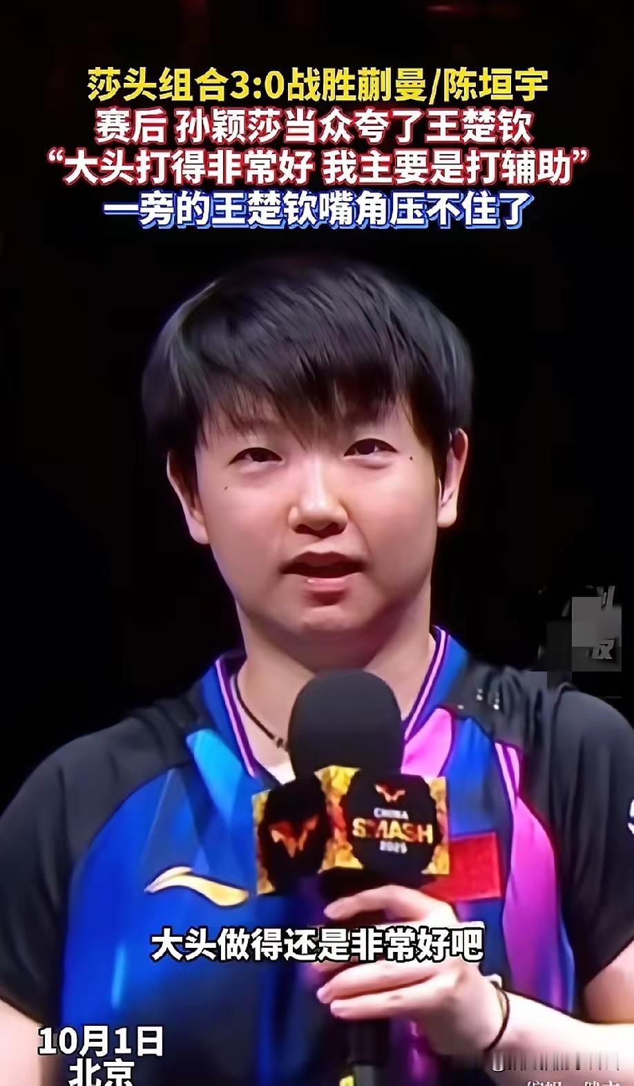 莎头组合3:0赢球不算最炸的,孙颖莎赛后那句“我主要打辅助”才真的戳中人心!明明