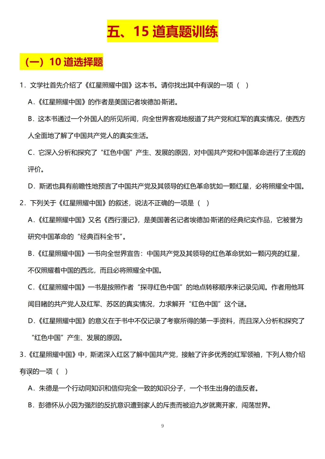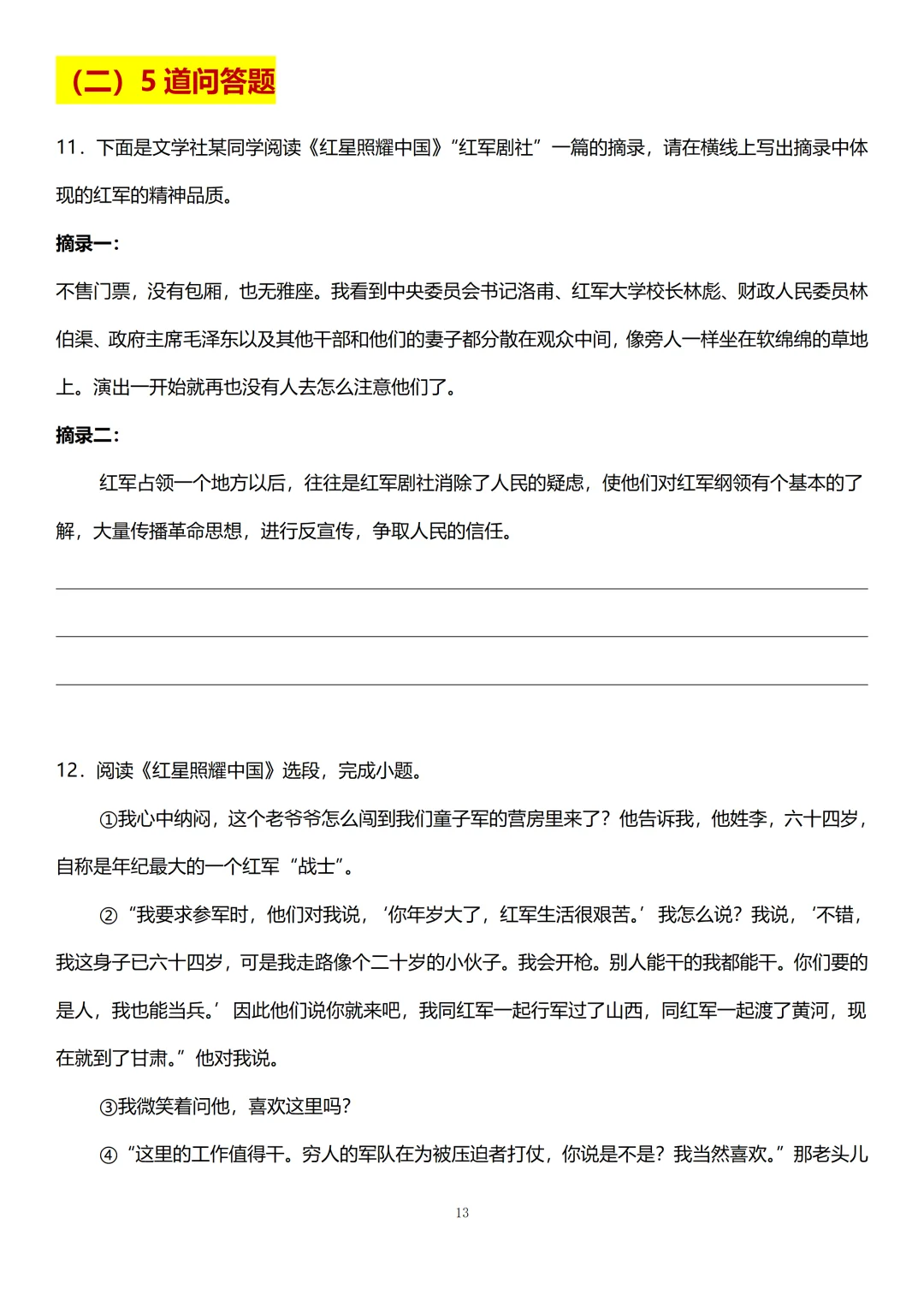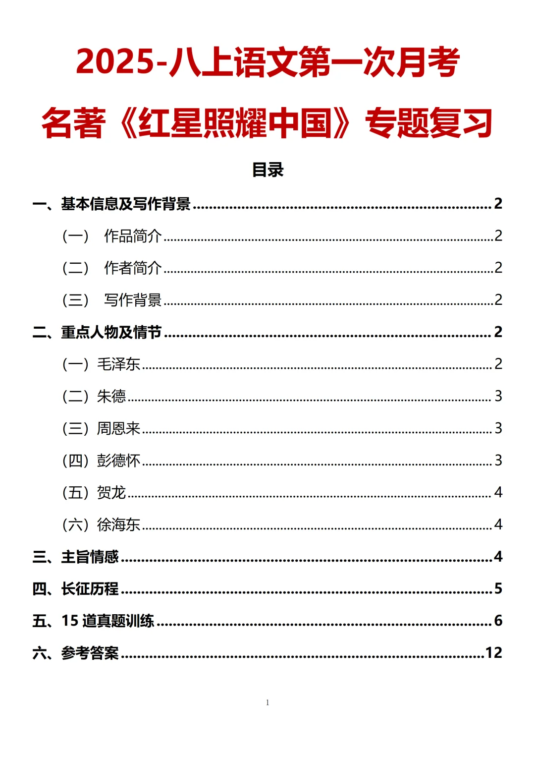 [爆炸R]八上第一次月考名著板块主要是考《红星照耀中国》。小蓝老师看了上百张全国各地八上的第一次月考试卷。连夜肝出这份「八上第一次月考名著专题汇总」,从《红星照耀中国》的基本信息及写作背景、重点人物及情节、主旨情感到长征历程,4类必考点和15道真题全覆盖。语文要想得高分,名著板块必须拿下!
