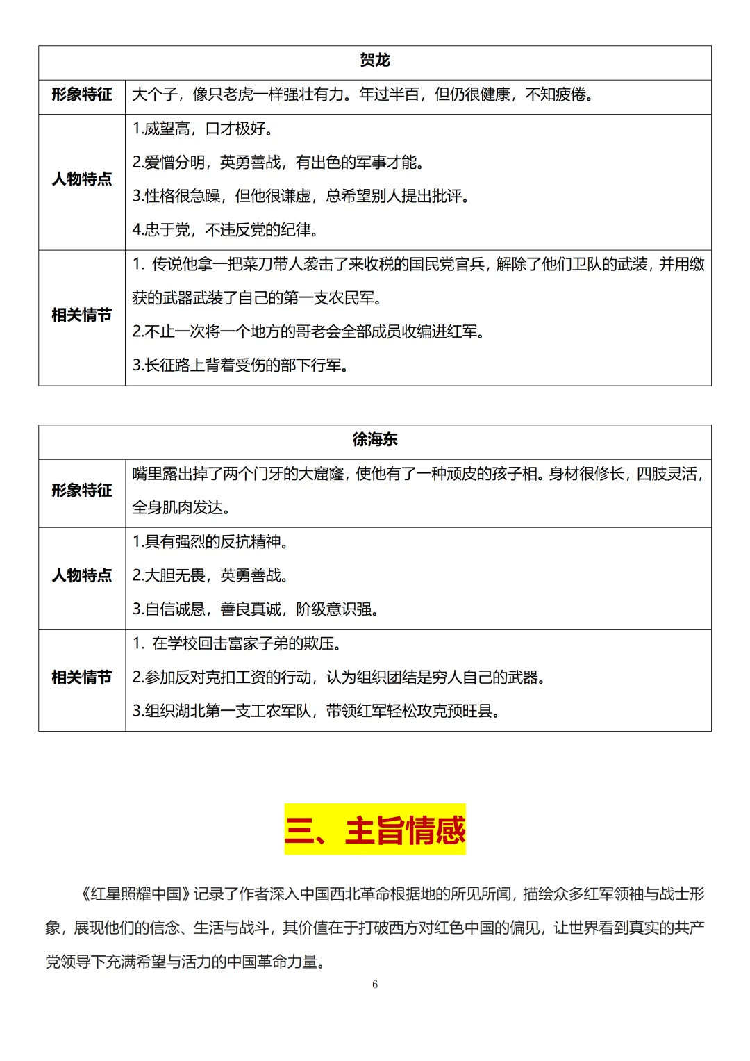 要想月考拿下名著板块,必须把《红星照耀中国》的重点人物及其情节都背下来。重点人物包括毛泽东、朱德、周恩来、彭德怀、贺龙、徐海东。选择题最常考的形式就是问你哪一情节不属于哪一个人,问答题则会要求你结合具体情节概述某一具体的人物形象。