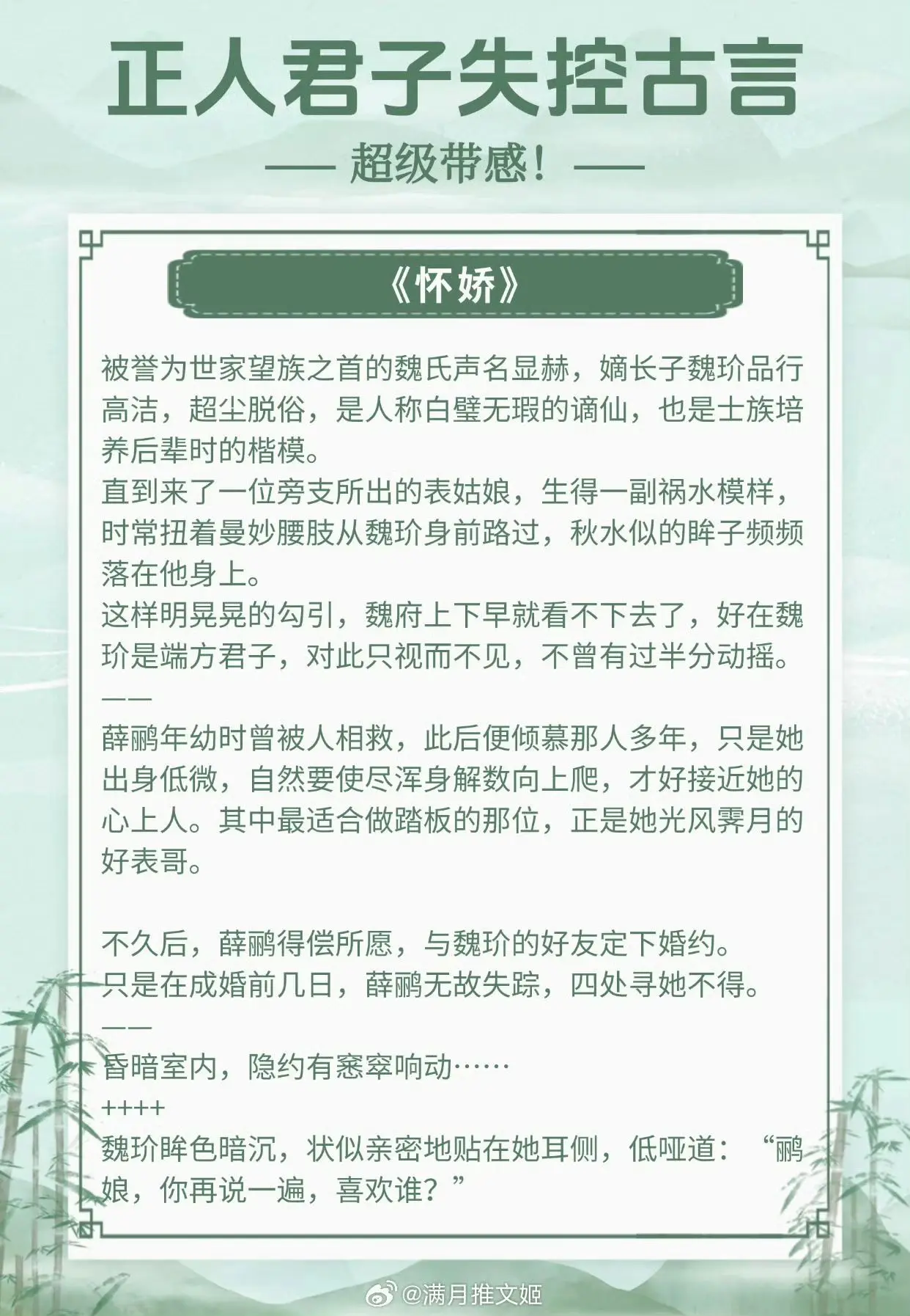【正人君子失控古言】你再说一遍,喜欢谁?《月明千里》作者:罗青梅...