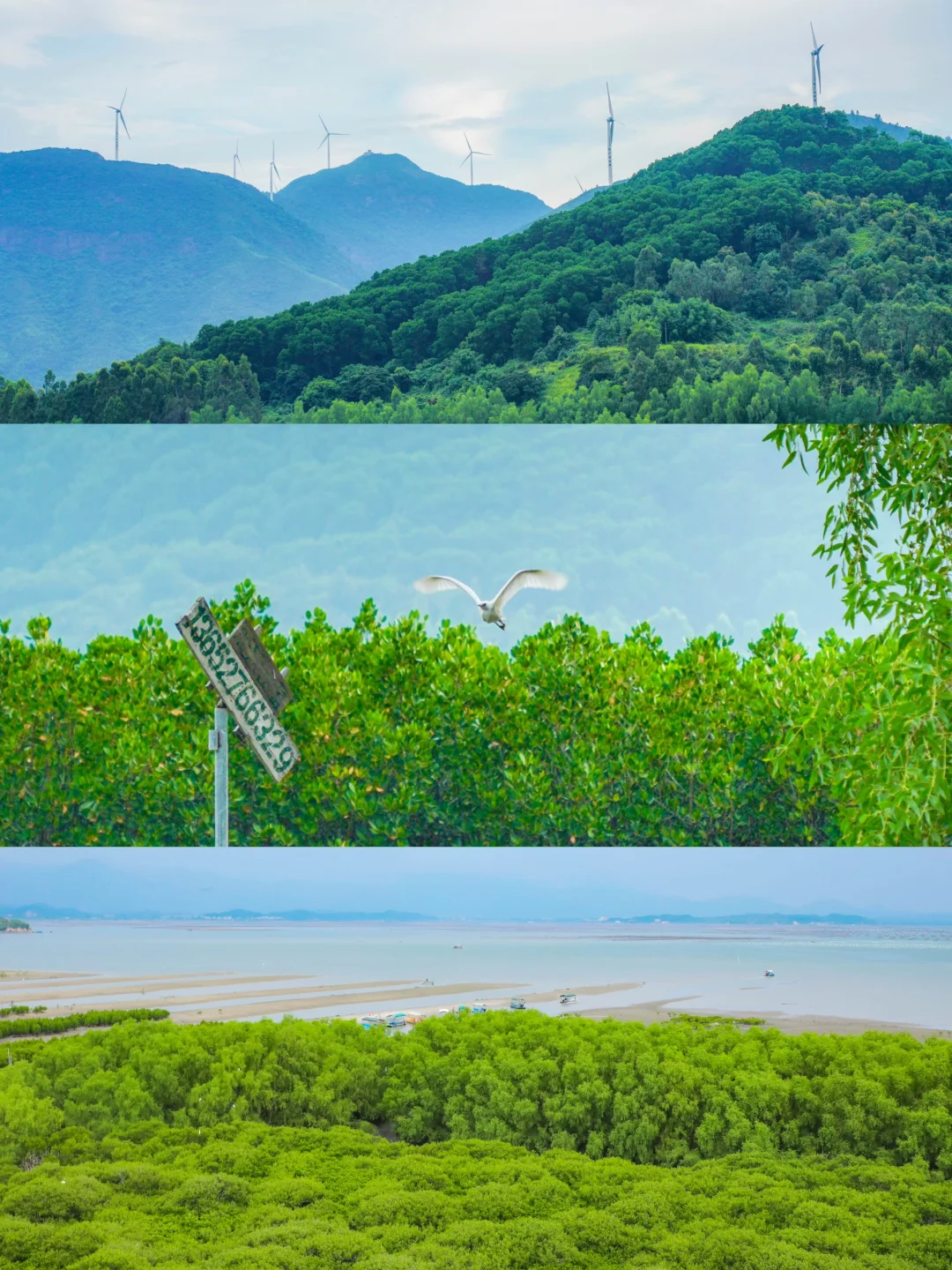 礁石沙滩、风车海湾、水中树林、野生白鹭……