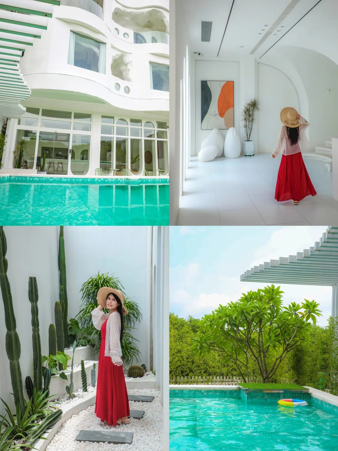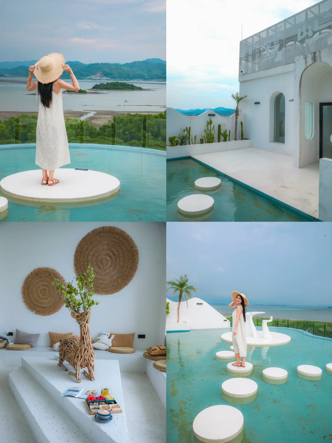 ▪️民宿是纯白色的,洞穴设计简约又特别,里面的书屋、咖啡吧、泳池都很出片。