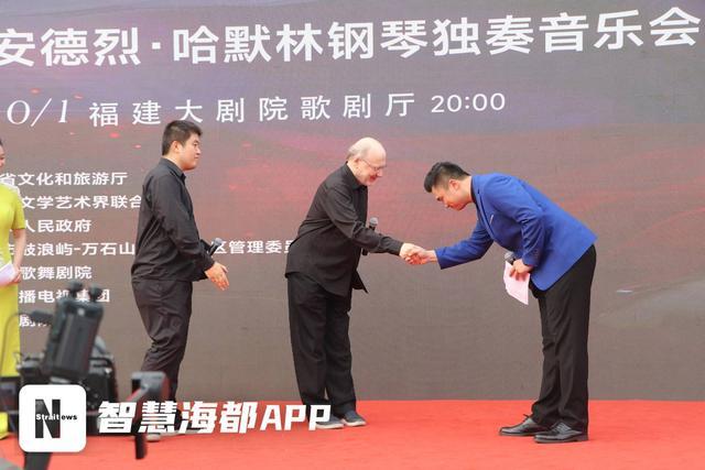 当天最令人惊喜的,莫过于国际钢琴艺术巨匠马克-安德烈・哈默林的到来。这位曾七度荣获“朱诺奖”、十一度获“格莱美”提名的钢琴大师,受福建省文旅厅“全球知名艺术家创作计划”之邀首次到访福州。他表示,能在假日里与如此多的福州观众相聚,感受他们对艺术的热情,他倍感欣喜,并诚挚邀请大家前往福建大剧院欣赏其钢琴独奏音乐会。