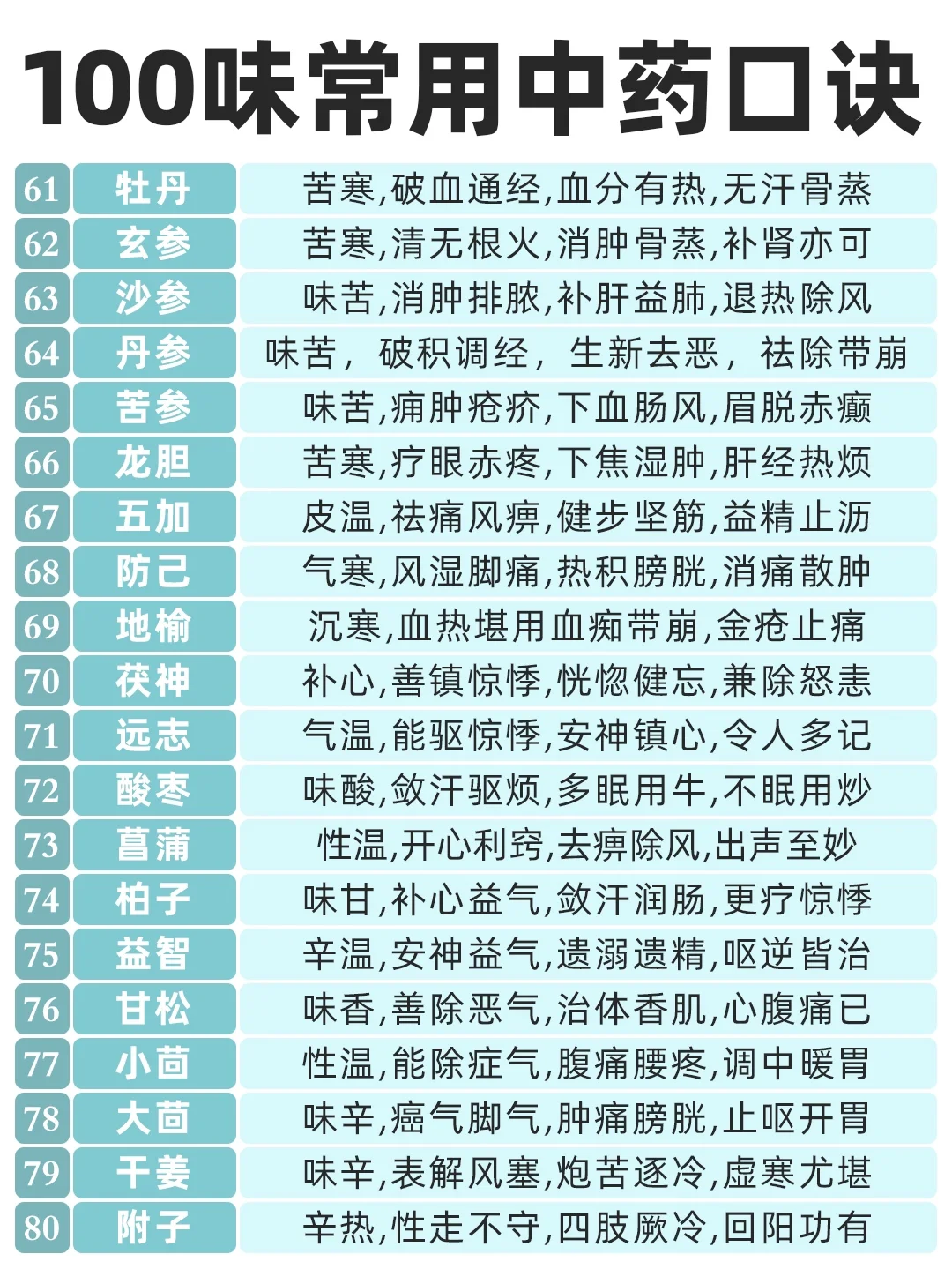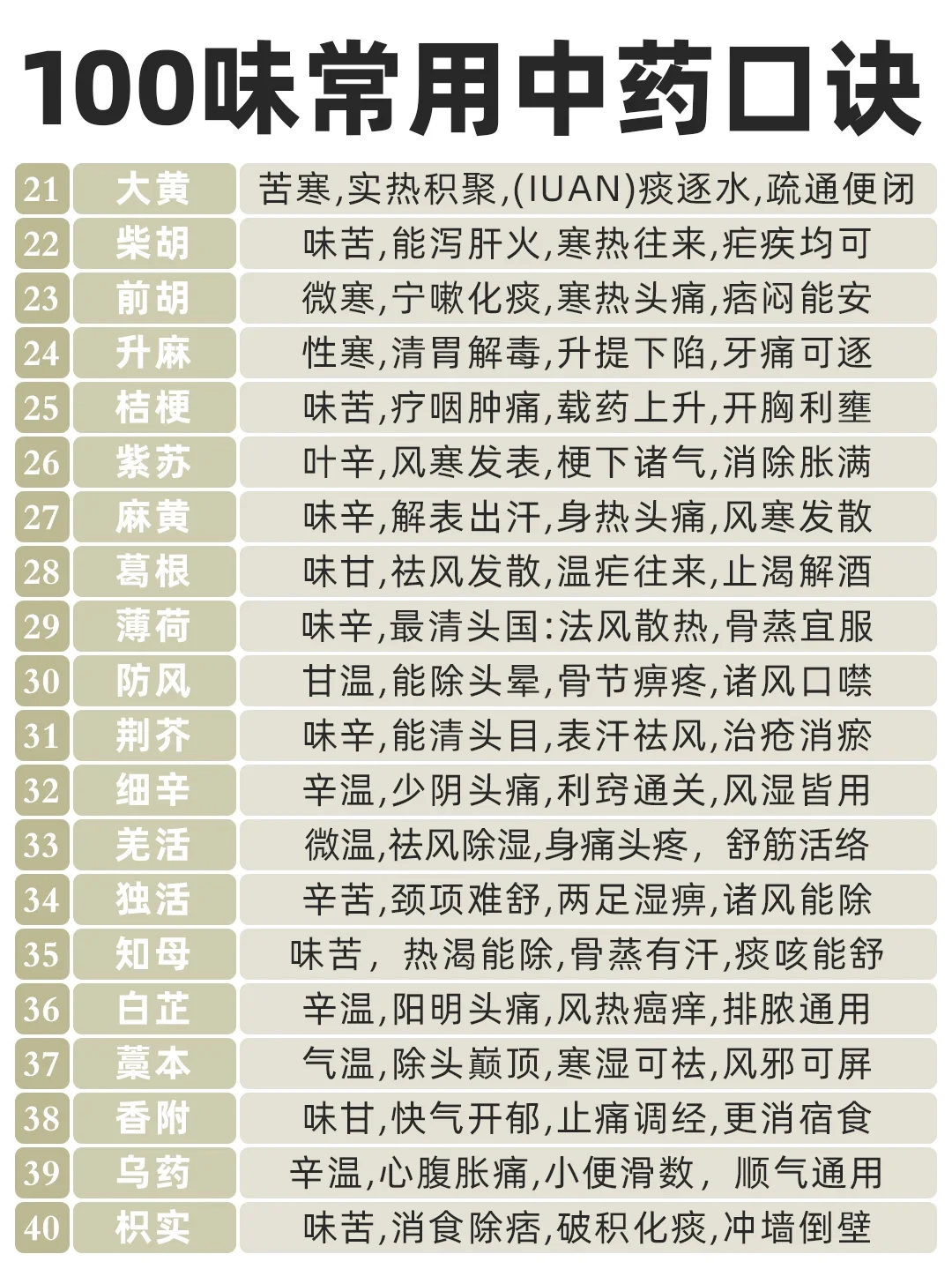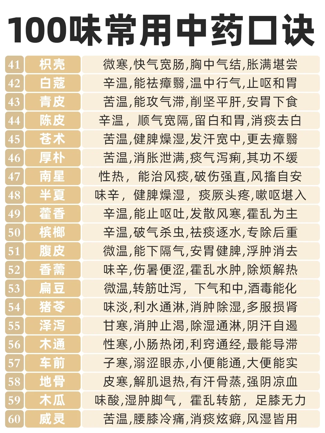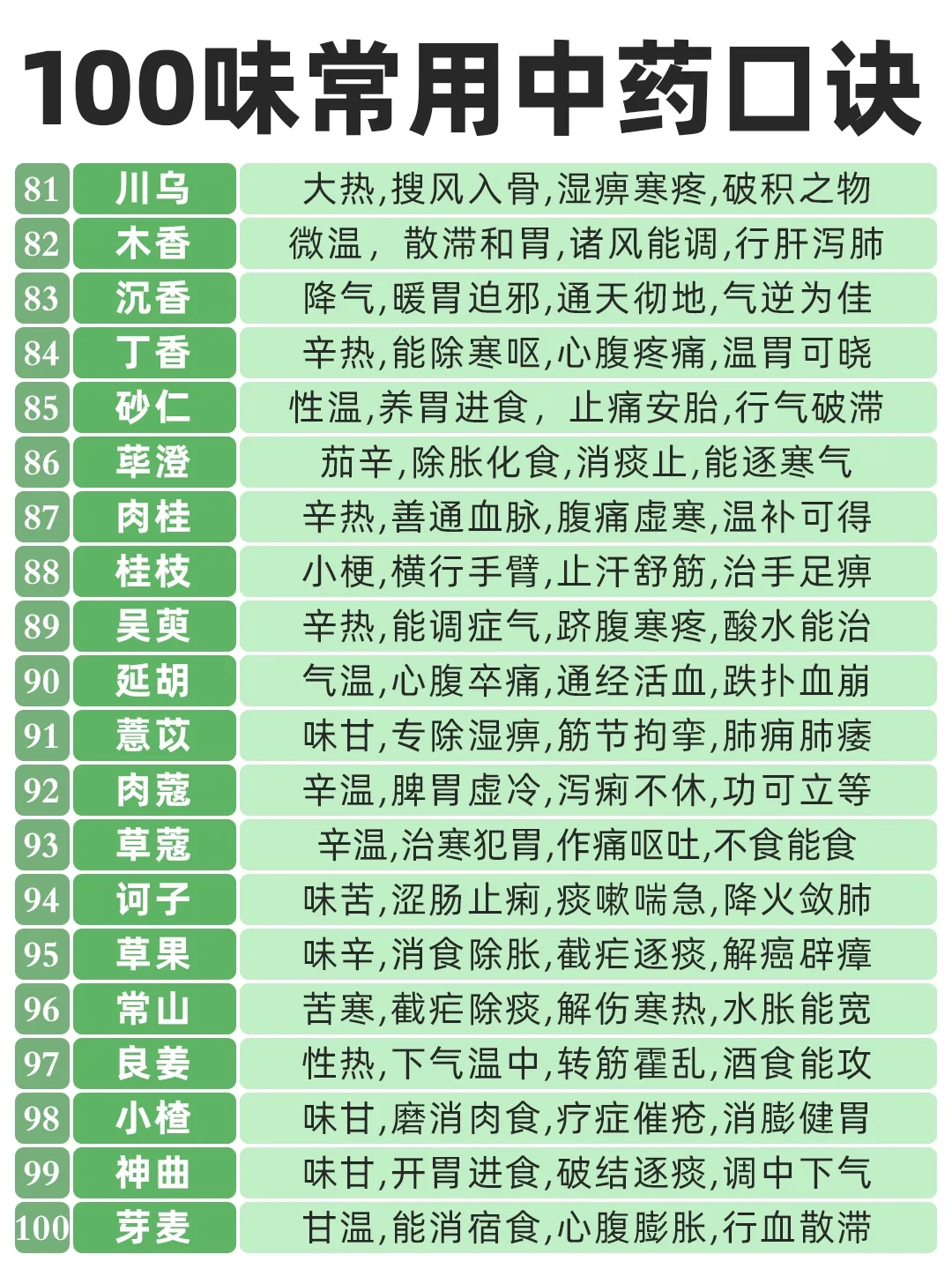药对是历代医者长期实践的经验总结,智慧的结晶,体现了中医遣方用药的特色优势。今天给大家总结了100种中药的药性以及作用。