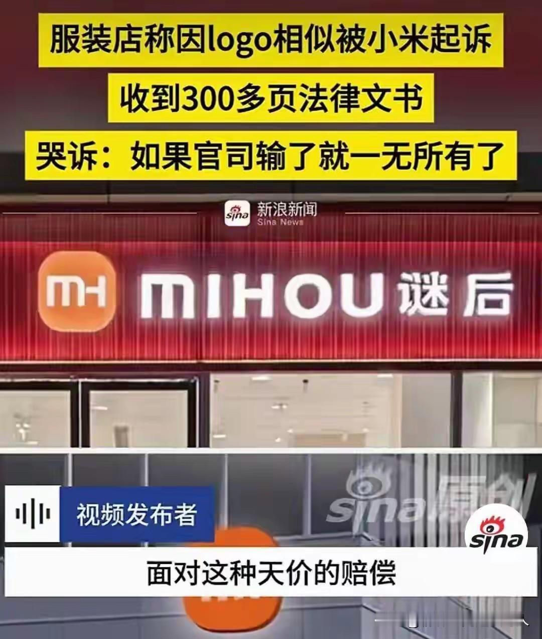 近日,广州一服装店因logo和小米相似,被小米起诉,法律文书多达300多页,被巨额索赔。 老板娘哭诉:如果输了官司,就一无所有了[流泪]。 乍一看,两个logo还真有些相似。 服装店老板娘这是对小米的法务团队没有敬畏之心啊! …… 大家觉得这家名叫“谜后”的服装店被小米起诉冤吗? 是小米小题大做了呢? 还是服装店咎由自取呢?