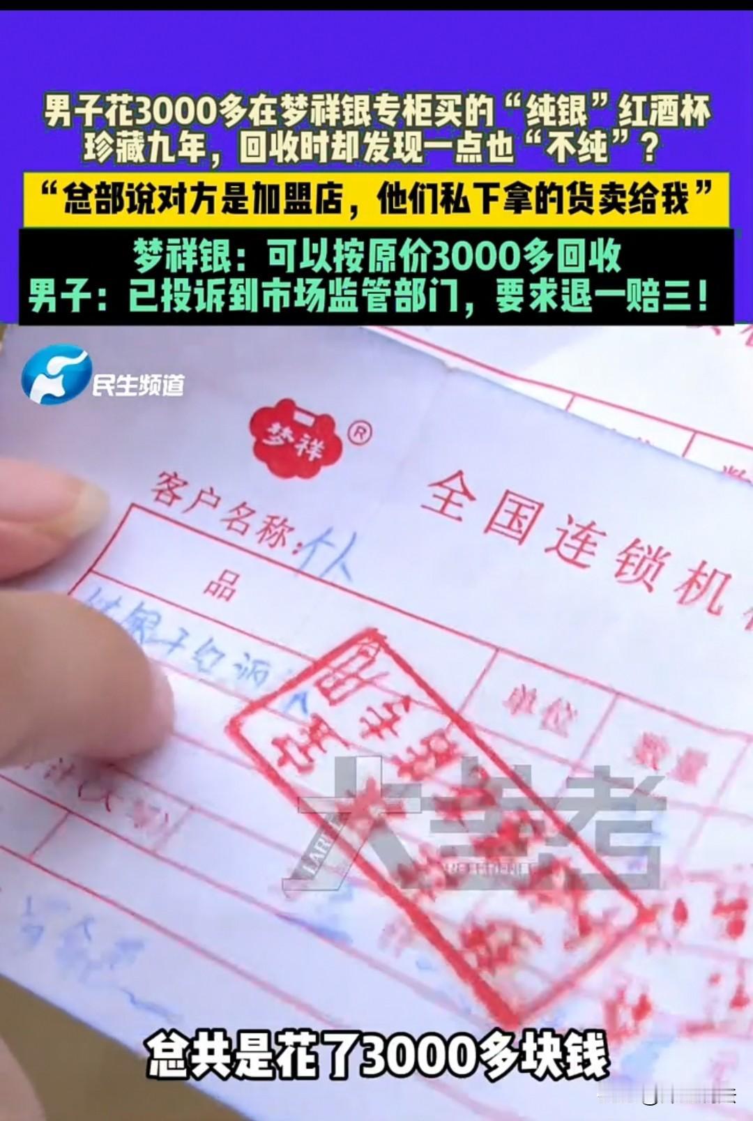 “你这是欺骗,必须退一赔三。”郑州,男子花3000元买了一个纯银的红酒杯,几年后拿去回购,别人说杯子不纯,杯身只有50%至60%的纯度,而杯角只有20%至30%的纯度。男子联系总部,对方说你买的地方是他们的加盟店,这个杯子不是从他们那里进的货,是加盟店私下到别的地方进的,但他们愿意出3000元回购。可男子觉得,自己都珍藏了九年,对方还是以原价回收,肯定没有道理,必须要求退一赔三。 男子遇到了一个糟心事,他在九年前买的纯银红酒被拿去鉴定,居然不纯。 这可有点伤他的面子了,自己买东西从来不会买假的,绝对是买最好的,当时店员就告诉他这个杯子是“100%纯”的,现在怎么就变得不纯了? 这个杯子一直放在家里,不会有人动过,也不可能有人掉包,那这个问题出在哪里呢?无非就是当初卖给自己的店家售假。 最后他找到店家,人家不承认是从他们这里买的,即使男子拿出了发票,他们还是不承认。 我想知道,你们夸大宣传售卖假货,现在一口否认是你们家的货就结束了吗?他又给总部打电话。 总部也说你这个杯子确实不纯,并且还说明这个杯子不是从我们这里发的货,如果确定是他们加盟店卖给你的,那么说明是加盟店私自进的货,与我们无关。 怎么可能与你无关呢?男子质问对方,那可是你的加盟店呀,他们售卖不纯的杯子冒充纯银卖给我,那你们管理有问题呀,我不找他们了,就找你们。 最后总部没有办法,他们内部的事情关起门来自己处理,这杯子如果不给男子处理,闹大了对他们的品牌有影响。 因此,他们就提出,既然你说是在我们加盟店里买的,那我们承担责任,你当初是以3000多元买的,那么我们就以3000多元回购,怎么样? 反正不让你有损失,这也算是我们维护了顾客权益。 但男子不这么想,我买它是图它值这个价,是想让它保值,现在按原价买又原价收回去,我有什么好处? 单说货币通胀,九年前的3000元可比现在的3000元值钱多了。 所以男子怎么也不答应对方以3000元回购,坚持必须让他们退一赔三。 可总部也觉得吃亏,自家下面加盟店惹的糟心事还没处理,这边还要亏本回收,说出去也不合理。 事情就这样僵持着,还没得到处理。不过男子认为这件事没得商量,自己为这个杯子付出了九年的感情,不可能白白让他们回购。 且不说按原价回购自己会亏本,单从自己对这个杯子付出的感情和时间来说,他们也必须退一赔三。 最后总部没有给出更多回复,男子也打算向市场监督局投诉,他相信这么明显的对错,自己绝对会胜诉。 我可以帮你把这段内容整理成更清晰的事件梳理文档,方便你后续查看或作为投诉参考,需要吗? 1、加盟店说“纯银”结果是假的,算骗吗?能要求赔吗? 《消费者权益保护法》第五十五条,经营者提供商品有欺诈行为的,要按商品价款的三倍赔偿,不足五百元按五百元算。 肯定算欺诈呗。店员明明说“100%纯银”,实际杯子纯度才20%-60%,这就是故意说瞎话骗你买东西。而且你有发票,能证明是从他家买的,完全能按这个条例要赔偿。 2、总部说“加盟店私进货,跟我无关”,这话管用吗? 《商业特许经营管理条例》里要求总部得管加盟店,没管好就要担连带责任; 《民法典》第一百七十二条,加盟店挂着总部牌子,消费者以为是总部的店,总部就得认账。 肯定不管用了。总部和加盟店私下说“出事自负”,对咱们消费者没用。你是信这个品牌才买的,总部没管好加盟店乱进货,本身就有责任,不能甩锅。 3、男子要“退一赔三”,能赢吗? 还是《消费者权益保护法》第五十五条,只要商家有欺诈行为,消费者就能要三倍赔偿。 大概率能赢的。你有发票、鉴定报告,证据很全,能证明加盟店骗了你,总部也得担责。总部说原价回购,只是退了本钱,没给三倍赔偿,不符合法律规定。 对于此事,大家如何看?