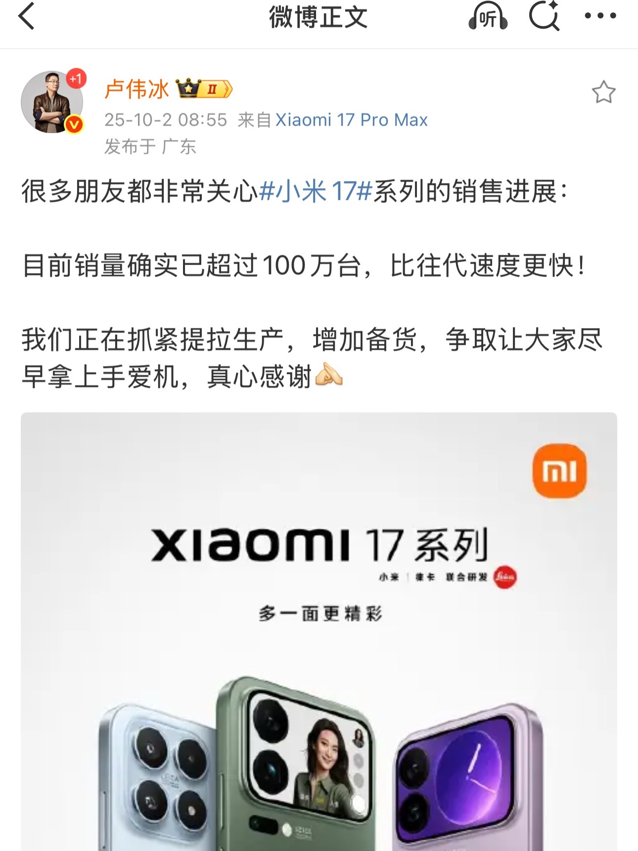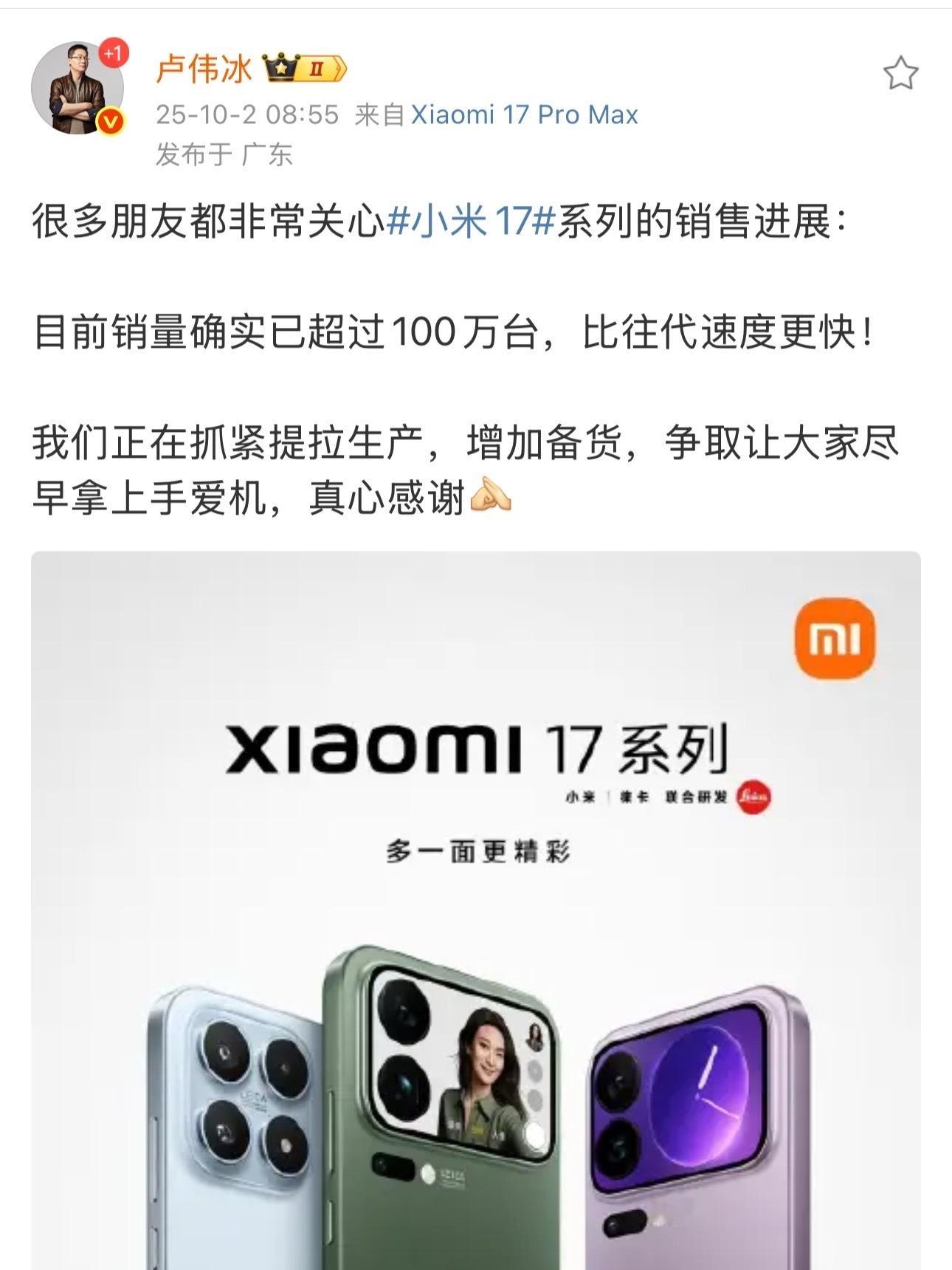 神速,小米17 系列销量突破100万了,目前小米 17 Pro Max 发货时间要半个月了,闲鱼也加价在卖,小米 17系列,在同等价位,没有对手,强的一匹