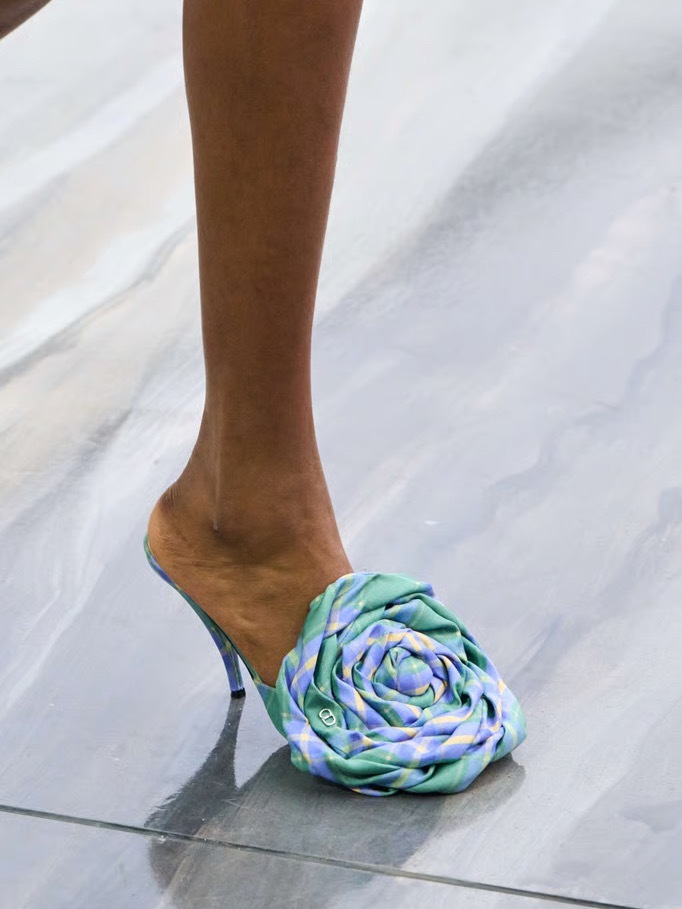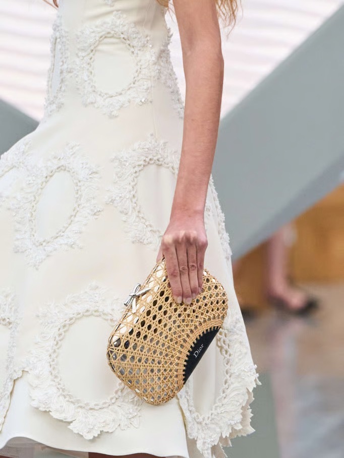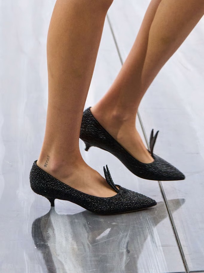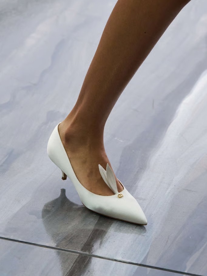 在 迪奥2026 春夏系列中。鞋履与包包上呈现出别样的细腻巧思。兔耳朵包包和鞋,增添了几分轻盈的浪漫。