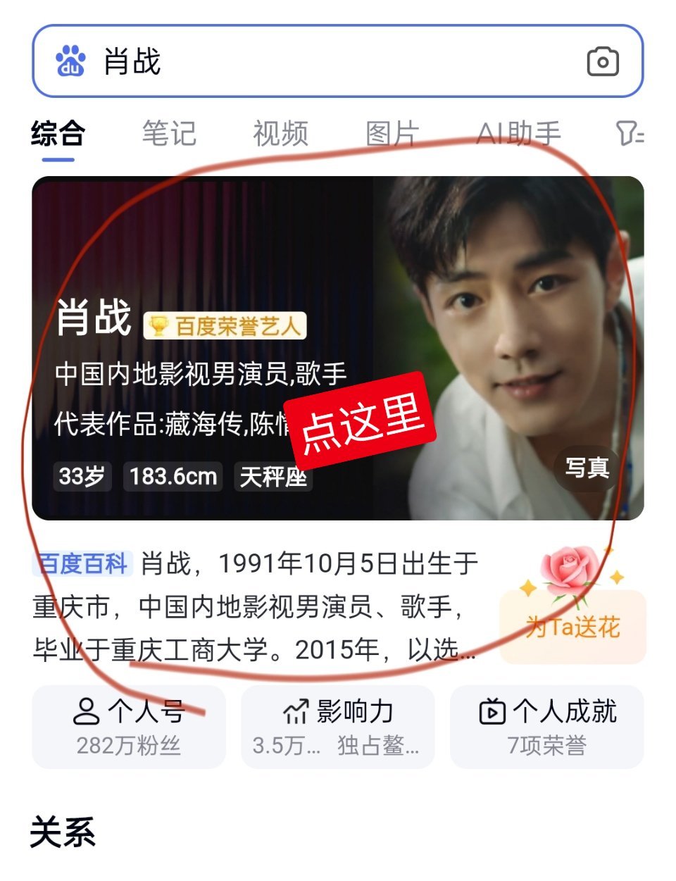 百度搜“肖战”,点百度百科,送生日祝福啦📢