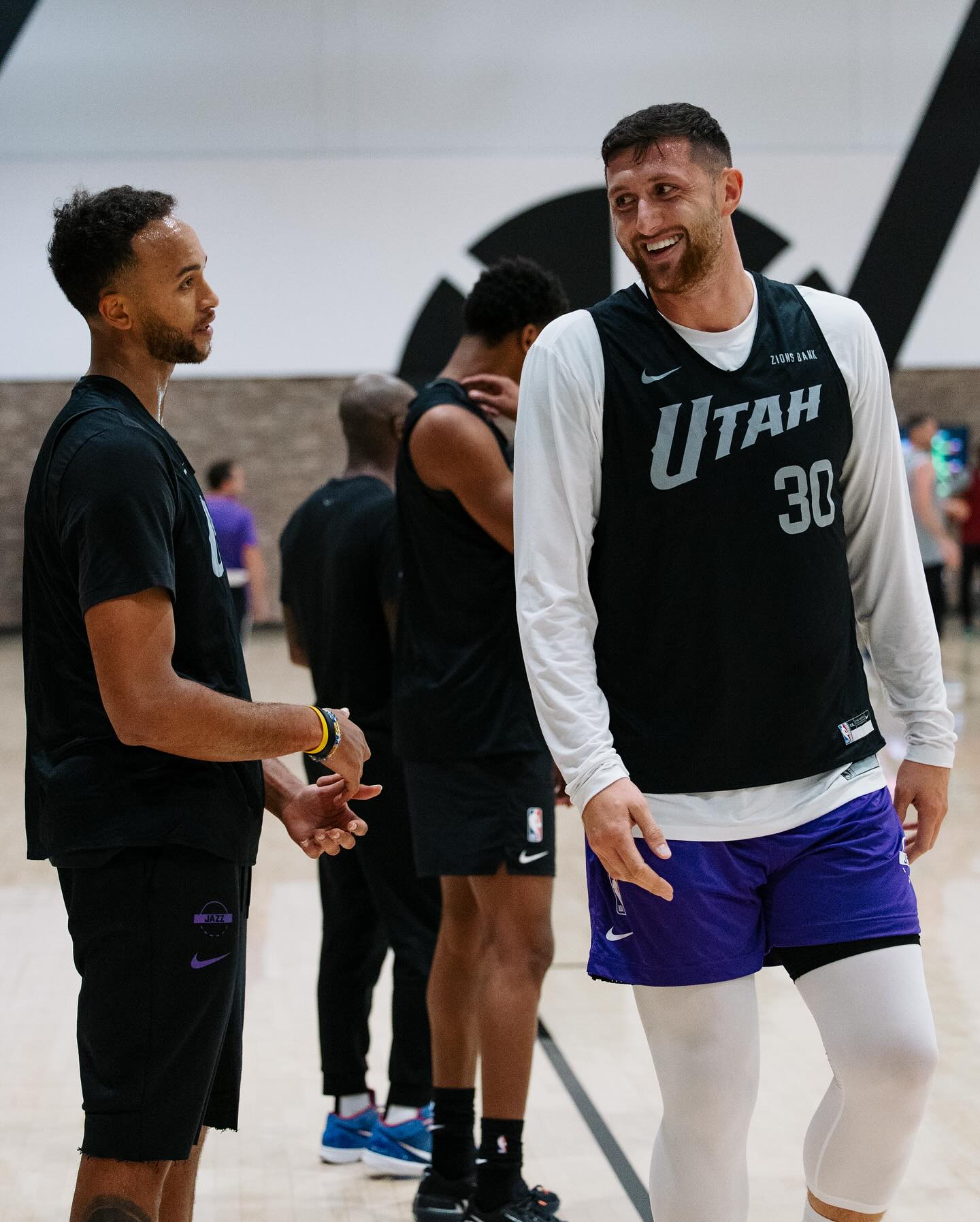 虎扑10月02日讯爵士官方更新Ins,晒出一组球员们的训练照与球迷分享。